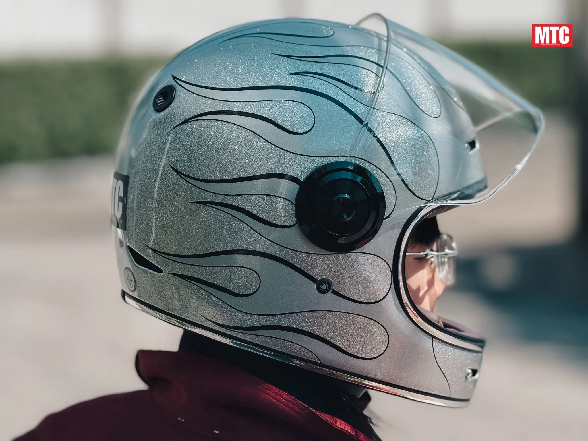 ถึงแม้แรงบันดาลใจจะมาจากยุค 70s แต่เทคโนโลยีทันสมัยนะ เริ่มตั้งแต่ตอนใส่หมวก ด้านในบุฟองน้ำมานิ่มมากกก (ก.ไก่ล้านตัว) ใส่แล้วไม่กดหน้า ไม่บีบแก้ม ไม่เจ็บศีระษะและหูเลย หมวกรุ่นนี้ให้น้ำหนักกลางๆ ไม่หนักหรือเบาเกินไป ใส่ขับขี่ในย่านความเร็วปานกลาง ไม่มีโยกหรือส่าย ช่องลมบนศีรษะและด้านล่างคาง ก็ช่วยรับลมได้ดีมาก ใส่ขี่ตอนกลางวันไม่อับเลย ชิลด์ใสที่ให้มา มีหน้ากว้าง องศามองชัด ทัศนวิสัยดี ที่สำคัญหมวกรุ่นนี้ผ่านระดับโลก มั่นใจได้เลยว่าปลอดภัยชัวร์
