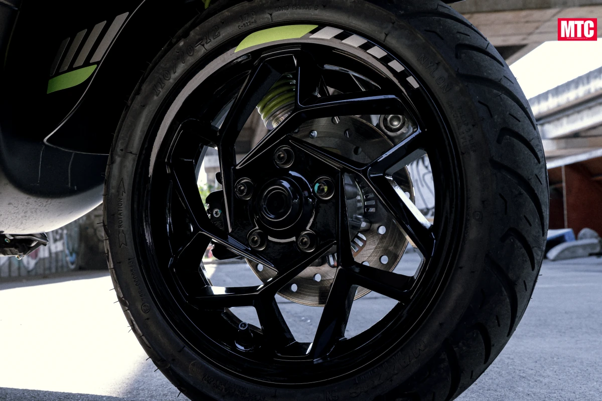 ทางด้านวงล้อเป็นแม็กลายใหม่ ออกแบบได้สวยงามมาก รัดด้วยยาง Maxxis หน้า Tubeless 110/70-12″ M/C 47P, หลัง Tubeless 120/70-12″ M/C 58P กับฟีลลิ่งที่เอาอยู่สบาย ๆ ในลักษณะการใช้ทั่ว ๆ ไปแบบซิตี้ยูซ ในจุดนี้ถ้ามีโอกาสทดสอบหน้าฝน ค่อยเอามาเล่าซ้ำอีกครั้งครับ
