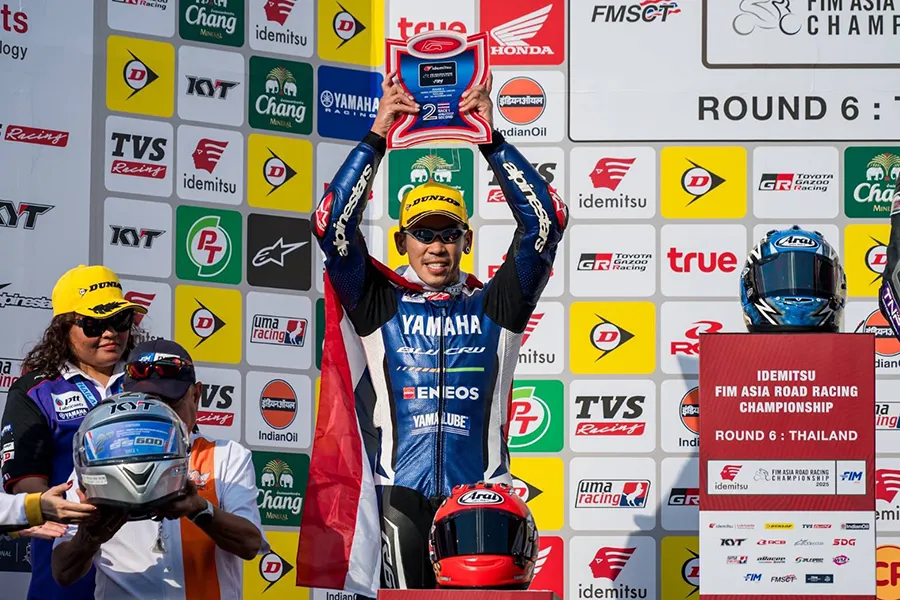 “ตี” อนุภาพ ซามูล ยอดนักบิดไทยจาก ยามาฮ่า ไทยแลนด์ เรซซิ่งทีม เข้าของรถ YAMAHA YZF-R6 หมายเลข 500 ผลงานยอดเยี่ยม ออกตัวกริดที่ 2 ไล่บู๊เดือดคว้าโพเดียมอันดับ 2 เรซแรก ศึกสองล้อชิงแชมป์เอเชีย สนามสุดท้ายรุ่น ซูเปอร์สปอร์ต 600 ซีซี บีบช่องว่างลุ้นแชมป์ประจำปีเหลือเพียง 3 แต้ม