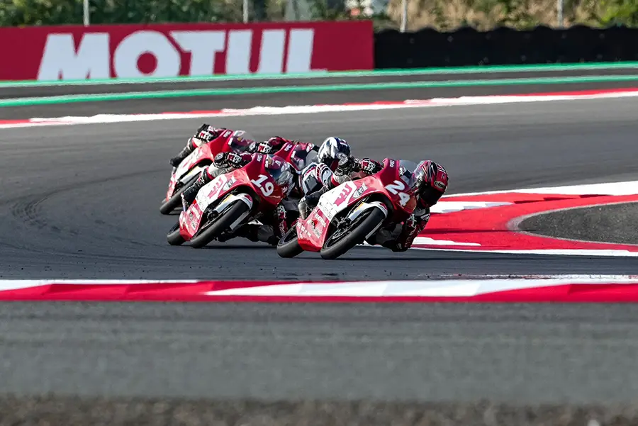 เรซสองนักบิดดาวรุ่งไทยสร้างผลงานโดดเด่น “อุ้ม-นพรุธพงษ์” ขี่สุดมันส์แย่งชิงอย่างดุเดือดก่อนเข้าเส้นชัยด้วยอันดับที่ 4 เก็บแต้มไปอีก 13 แต้ม ด้าน “ออสติน-ธนฉรรต” ก็ทำผลงานได้ดีเช่นกันจบการแข่งขันด้วยอันดับที่ 9 เก็บแต้มสะสมได้อย่างต่อเนื่อง รับเพิ่มไป 7 แต้ม ขณะที่ “เฟอร์-ปัญจรุจน์” สามารถแก้ไขสถานการณ์ได้อย่างยอดเยี่ยมพุ่งทะยานเข้าเส้นชัยเป็นอันดับที่ 14 เก็บแต้มสำเร็จ โดยรับเพิ่มไป 2 แต้ม