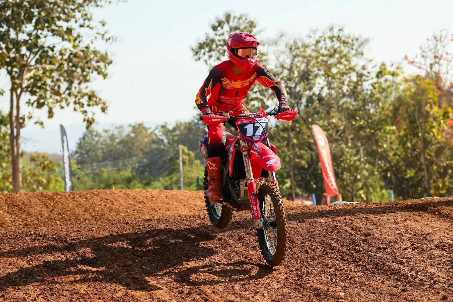 การแข่งขันสนามที่ 5 ดวลกันต่อเนื่องในวันอาทิตย์ที่ 22 มีนาคม 2569 รุ่นท็อปสุดของรายการ Premier MX-1 เริ่มต้นการแข่งขัน 2 นักแข่งฮอนด้า “นีโม่-จิรัฎฐ์” และ “แซงค์-กฤษฎา” เสียจังหวะจากอุบัติเหตุในรอบแรก ก่อนที่จะกลับมาสู้ในเกมส์อีกครั้ง ซึ่งเป็นโอกาสได้แสดงสุดยอดสมรรถนะของรถแข่ง Honda CRF450R ด้วยการไล่แซงเก็บอันดับขึ้นมาอย่างต่อเนื่อง