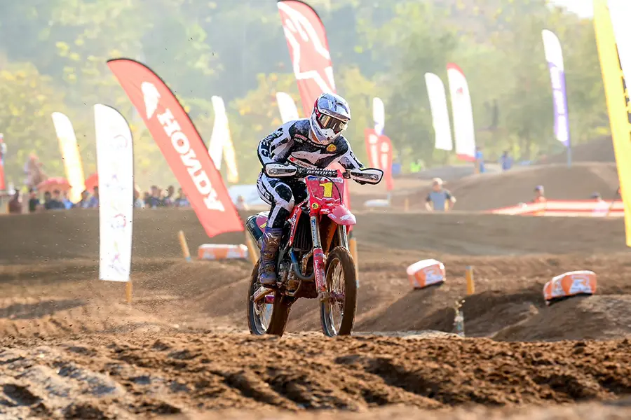 “นีโม่-จิรัฎฐ์” เจ้าของแชมป์ประวัติศาสตร์ Premier MX-1 พารถแข่ง Honda CRF450R หมายเลข 1 ยืดระยะออกมาทันทีจากกลุ่มผู้ตาม อย่างไรก็ดีความท้าทายของการแข่งขันสนามนี้คือการดวลความเร็วกันถึง 25 นาทีและอีก 1 รอบสนาม ซึ่งนักแข่งไทยพบกับความยากลำบากในช่วงปลายเกมส์อย่างเห็นได้ชัด จากระยะทางการแข่งขันที่เพิ่มขึ้น และเป็นประสบการณ์ที่สำคัญในสนามนี้ โดย “นีโม่” ก้าวข้ามความยากลำบากในสนามแรก คว้าโพเดียมอันดับที่ 3 มาครองได้สำเร็จ