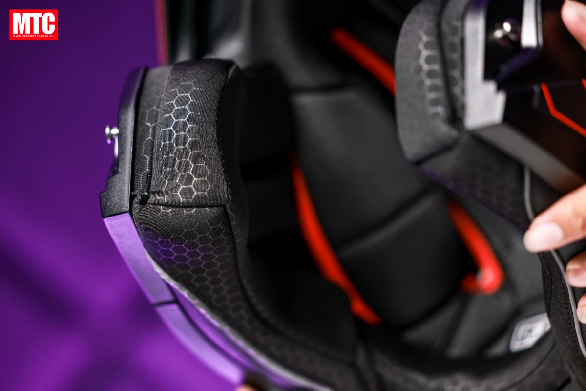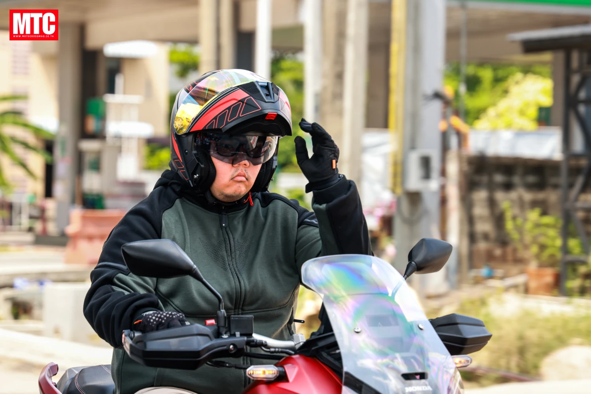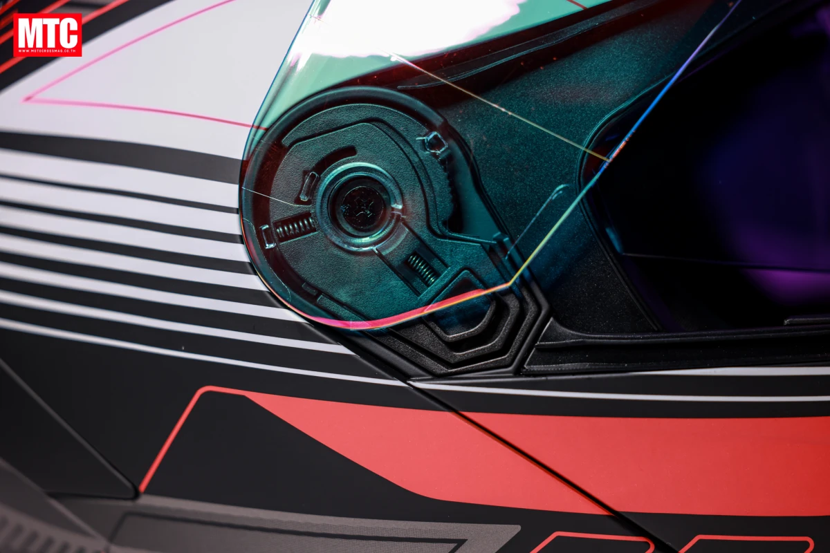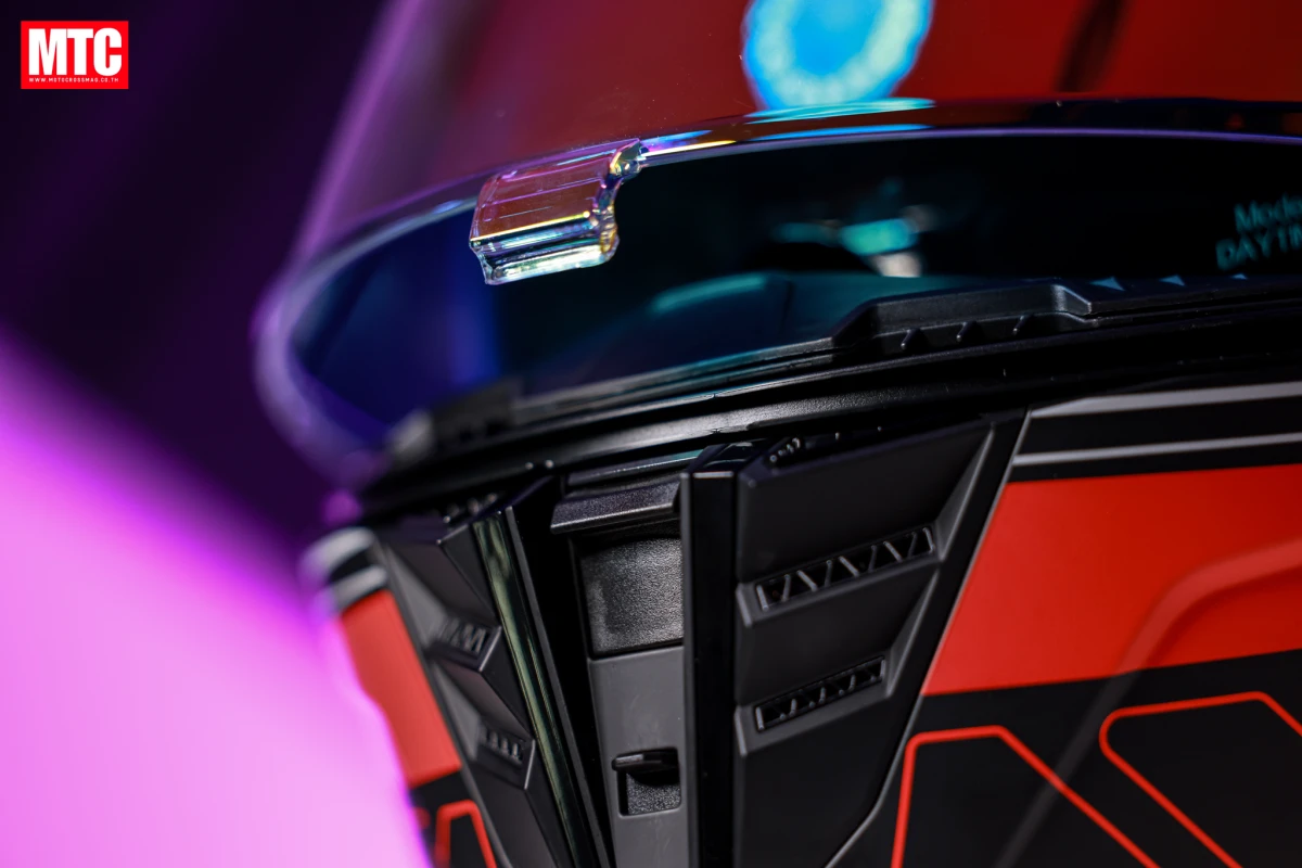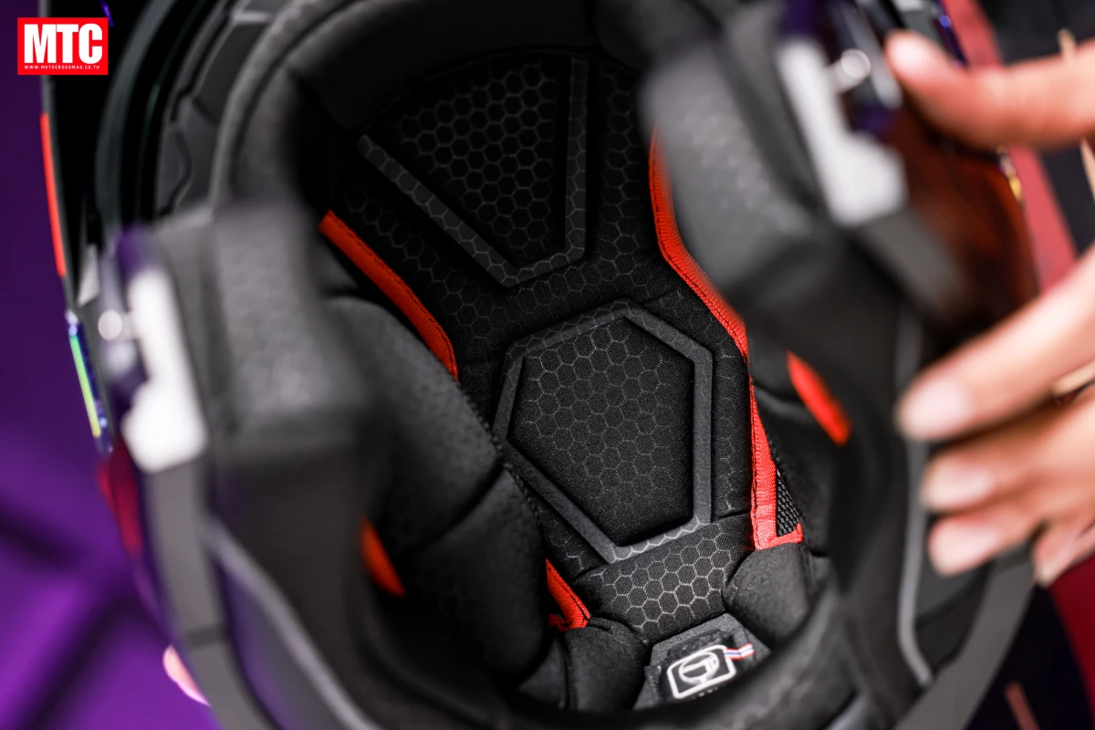 สัมผัสแรกตอนสวมลงศีรษะ ด้วยเทคโนโลยี Multi-Density EPS + SIP (โฟมซับแรงกระแทกหลายความหนาแน่น) ทำให้หมวกกระชับแน่นทุกส่วน สัมผัสได้ทันทีถึงความมั่นใจ อีกอย่างที่รู้สึกได้คือความใสของชิลด์หน้าปรอทแดง ซึ่งมีเทคโนโลยี Optical Class 1 ทำให้มองเห็นได้ชัดเจน ไม่หลอกตา ภายนอกดูสวย แต่ไม่บิดเบือนภาพ ภายในมองออกไปเคลียร์มาก อันนี้ดีจริง ๆ