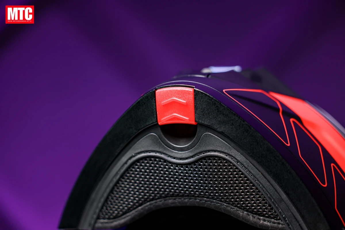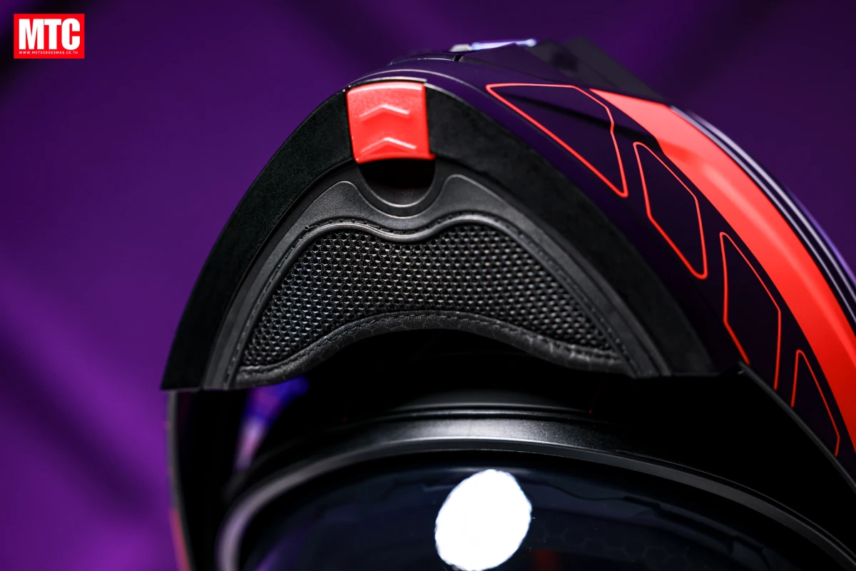 และช่องระบายอากาศออก 2 จุด แบ่งเป็นใต้สปอยเลอร์ 1 จุด และด้านหลังส่วนบนหมวก 1 จุด