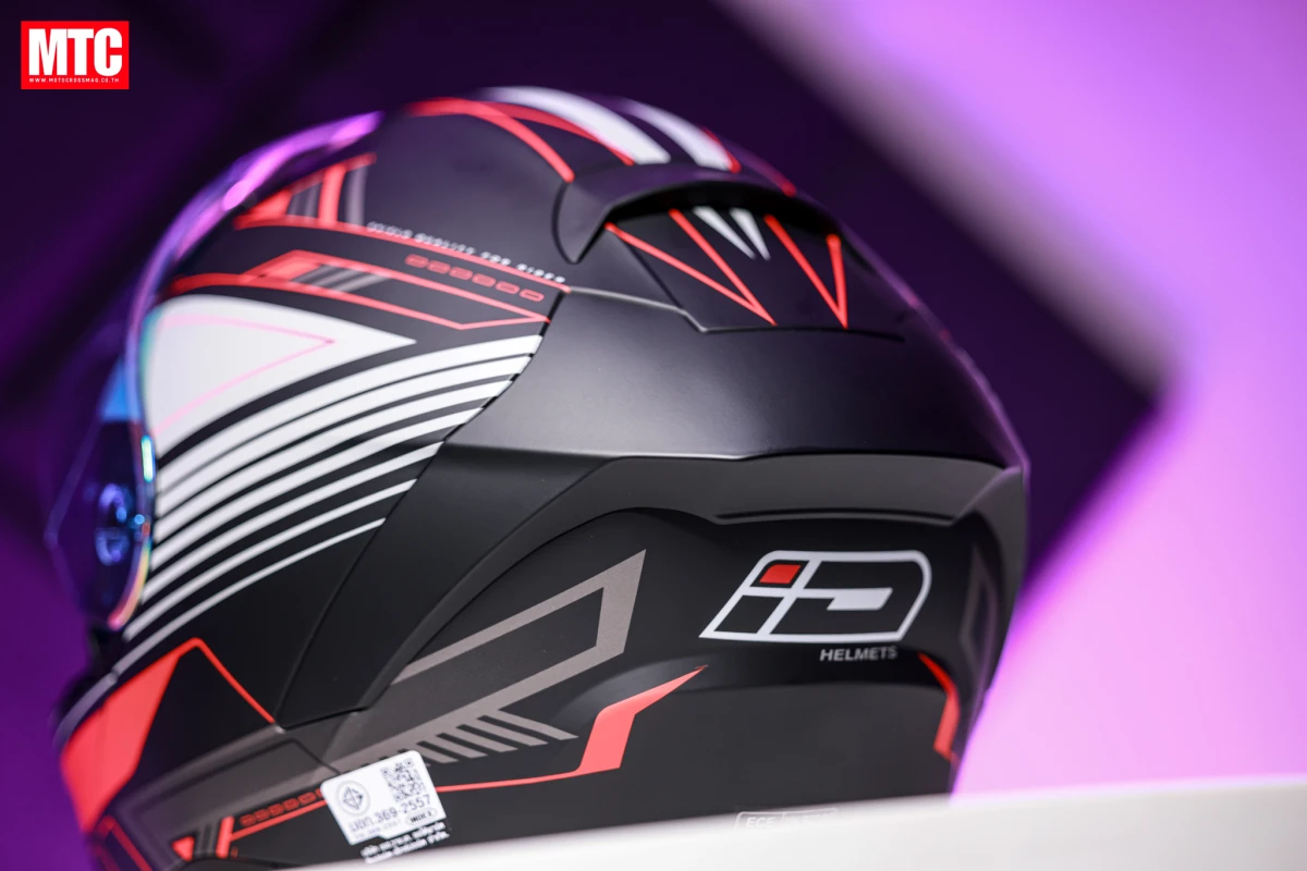 รูปทรงหมวกออกแบบตามหลักแอโรไดนามิก พร้อมมีสปอยเลอร์หลัง ช่วยให้ตัวหมวกลู่ลมและไม่ส่ายไปมา เพิ่มความนิ่งในขณะใช้ความเร็ว