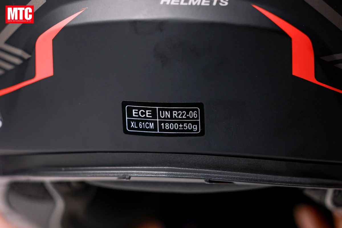 สำหรับรุ่นนี้มาพร้อมมาตรฐานความปลอดภัยสูงสุดและทันสมัยที่สุดจากยุโรป หรือก็คือ (ECE 22.06 ) โดยเปลือกหมวกผลิตจากวัสดุ SIRT (Super High Impact Resistant Thermoplastic) ซึ่งแข็งแรง ทนต่อแรงกระแทกสูง เมื่อบวกกับ โฟมด้านข้างแบบ Side Impact Protection (SIP) ซึ่งได้รับการออกแบบ ให้มีการรองรับแรงกระแทก หรือการเกิดอุบัติเหตุ จากด้านข้างบริเวณศีรษะโดยเฉพาะ และยังมีเทคโนโลยีโฟม Mutidensity EPS ช่วยซับและกระจายแรงกระแทก จึงทำให้หมวกนั้นมีความปลอดภัยสูง