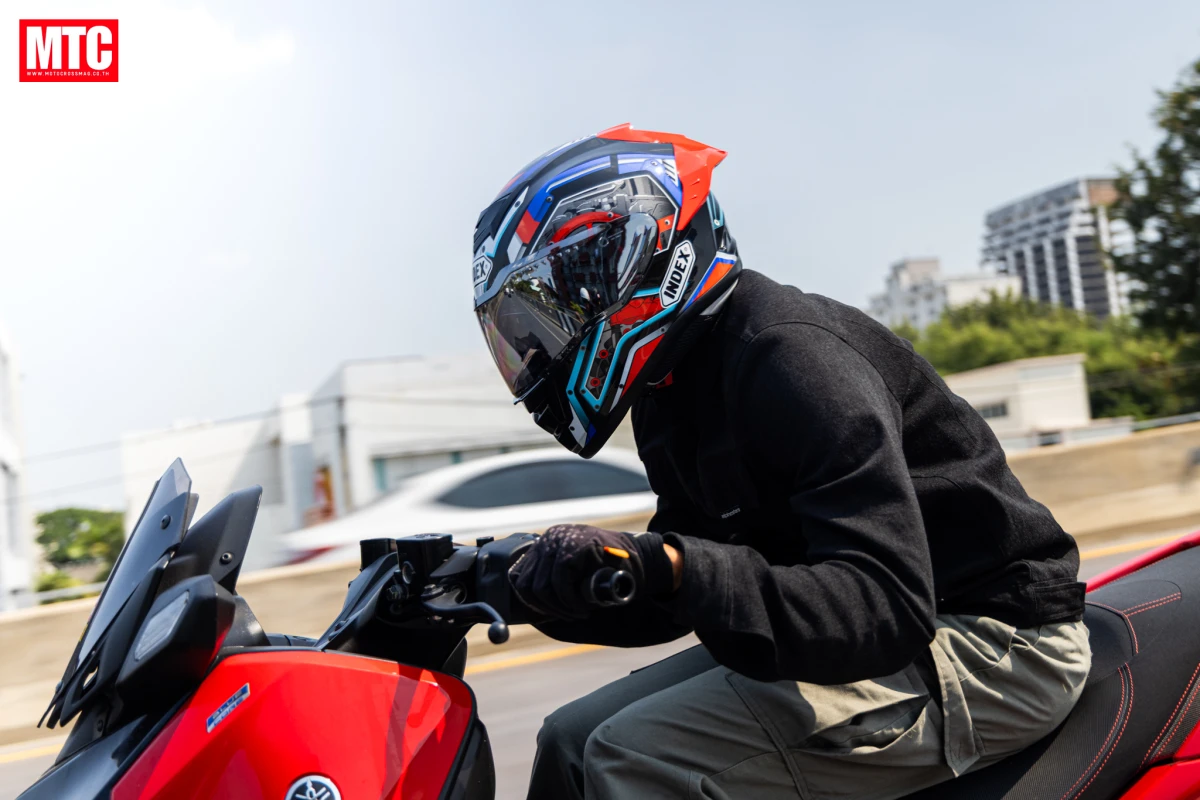 ขณะที่ทัศนวิสัย การมองผ่านตัวชิลด์หน้าอันนี้ในผ่านเลย รู้สึกมั่นใจ เพราะตัวชิลด์หน้าไม่บิดเบือน ไม่หลอกตา ยังมีในส่วนของแว่นกันแดดที่เป็นตัวเสริมมาให้ใช้ตอนขับขี่ย้อนแสงอีกด้วย ทำให้ใช้งานได้หลากหลายสถานการณ์ ช่วยเพิ่มความปลอดภัยได้มากขึ้นจริง ๆ