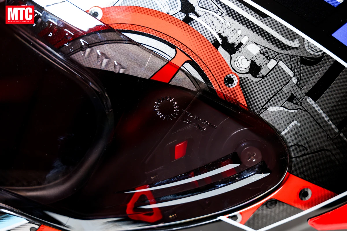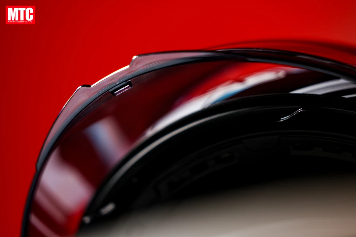 5.ชิลด์หน้าหรือแผ่นหน้าหมวกทำจากวัสดุโพลีคาร์บอเนต หนาและแข็งแรง ไม่แตก ต้านทานการเจาะทะลุ ด้วยเทคโนโลยี OPTICAL CLASS 1 แต่ยังให้ทัศนวิสัยคมชัดไม่หลอกตา ทั้งยังมีดีไซน์เส้นสายโฉบเฉี่ยวพร้อม Shark Fin Vortex Air Diffuser 4 ตำแหน่งช่วยจัดเรียงอากาศเพิ่มความนิ่ง ลดแรงลมปะทะ