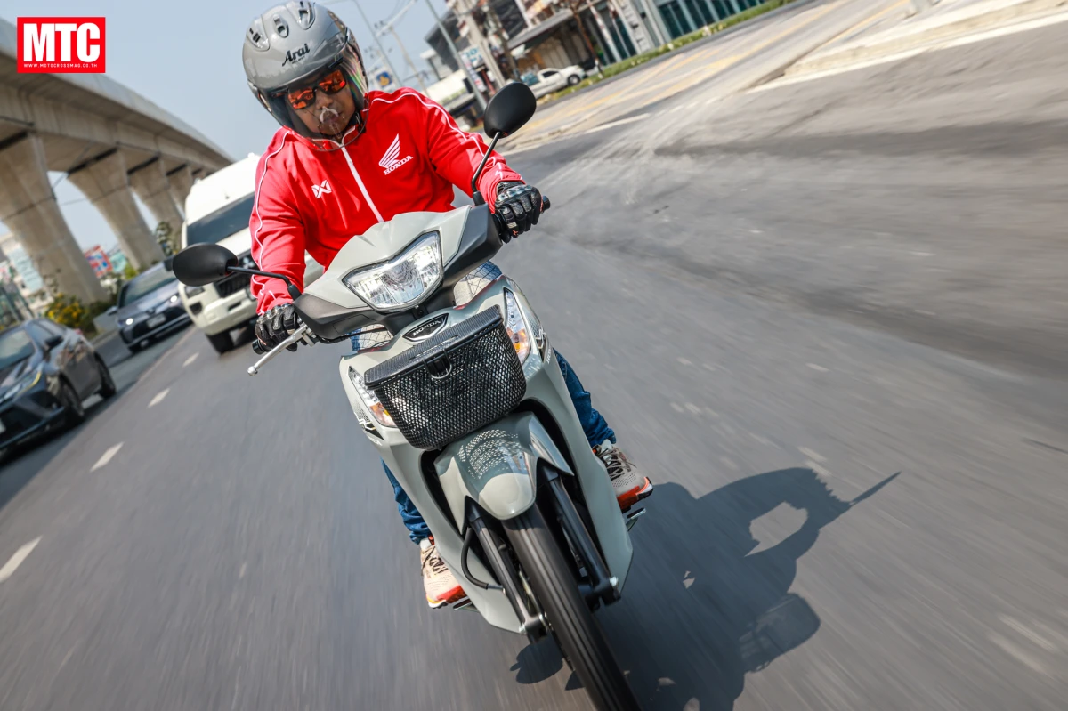 ความจริงที่ต้องรู้คือ เวฟ110 เป็นมอเตอร์ไซค์ครอบครัวขนาดเล็กที่ออกแบบมาให้ตอบโจทย์การใช้งานของคนทุกเพศทุกวัยอยู่แล้ว น้ำหนักตัวสำหรับรุ่นล้อแม็ค-สตาร์ทมือ ที่เราทดสอบครั้งนี้ อยู่ที่ 100 กก. ซึ่งไม่ได้หนักเลย