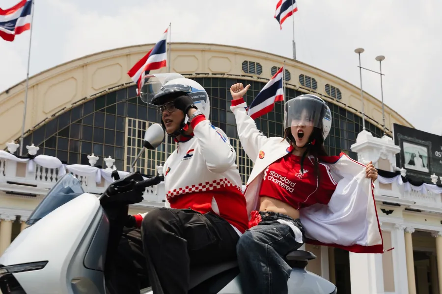 รถจักรยานยนต์ฮอนด้า ปลุกสีสันก่อนศึกแดงเดือด พาแฟนผี-เด็กหงส์ขี่ New Honda UC3 ทำภารกิจวอร์มศึกกลางกรุงฯ