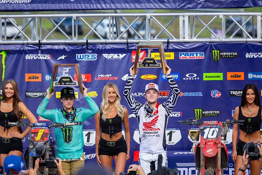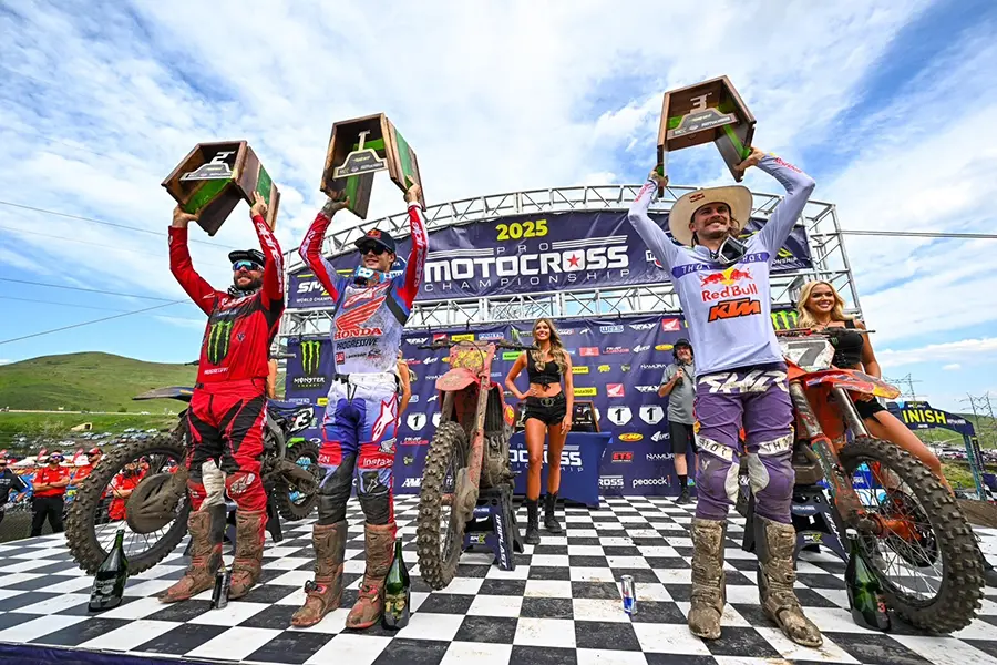 “เจ็ตต์ ลอว์เรนซ์” ยอดนักบิดชาวออสเตรเลีย ควบรถแข่ง Honda CRF450R จากทีม Honda HRC Progressive เหมาชัยชนะอย่างเด็ดขาดได้ทั้ง 2 เรซ เก็บคะแนนสะสมทิ้งห่างคู่แข่งในตารางแชมเปี้ยนชิพ ทำสถิติเก็บชัยชนะได้ครบทั้ง 3 สนามแรก ในการแข่งขัน AMA Pro Motocross (AMA MX 2025) สนามที่ 3 ธันเดอร์ วัลเลย์ โมโตครอส พาร์ค สหรัฐอเมริกา เมื่อสุดสัปดาห์ที่ผ่านมา