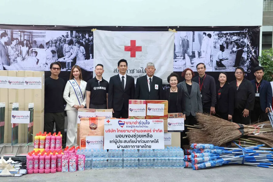นายอุกฤษณ์ ภาควิวรรธ รองผู้จัดการใหญ่ด้านวางแผนการค้าและการตลาด, นายจิรภัทร สายเพชร ผู้จัดการทั่วไปฝ่ายสื่อสารการตลาด และส่งเสริมการตลาด พร้อมด้วยอินฟลูเอนเซอร์สาย Biker ชั้นนำ ได้แก่ คุณจอห์น อริยะพงษ์ – จอห์น ไรเดอร์, คุณแพร ทวินันท์ และคุณเบนซ์ อัครกิตติ์ – เบนซ์เรซซิ่ง ร่วมส่งมอบอาหาร สิ่งของจำเป็น และอุปกรณ์ทำความสะอาดให้แก่สภากาชาดไทย ในโครงการ “ยามาฮ่าร่วมใจ ช่วยผู้ประสบภัยน้ำท่วม” โดยได้รับเกียรติจาก นายแพทย์พินิจ กุลละวณิชย์ ผู้ช่วยเลขาธิการสภากาชาดไทย และ นางสุนันทา ศรอนุสิน ผู้อำนวยการสำนักงานยุวกาชาด ร่วมรับมอบ เพื่อส่งต่อไปยังพี่น้องชาวใต้ที่ได้รับผลกระทบจากอุทกภัยน้ำท่วม 2568