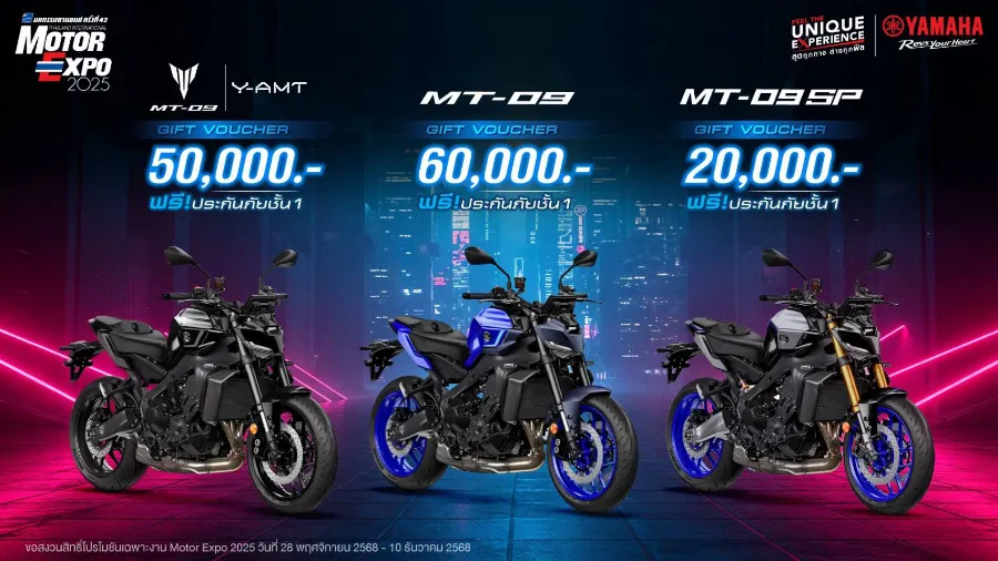 * ซืัอ MT-09 Y-AMT แถมฟรี Gift Voucher มูลค่า 50,000 บาท พร้อมประกันภัยชั้น 1