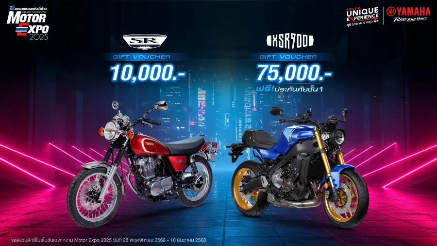 พบกับโปรโมชันสุดพิเศษได้ที่บูธ YAMAHA FEEL THE UNIQUE EXPERIENCE ภายในงาน Motor EXPO 2025 ระหว่างวันที่ 28 พฤศจิกายน – 10 ธันวาคม 2568 นี้เท่านั้น