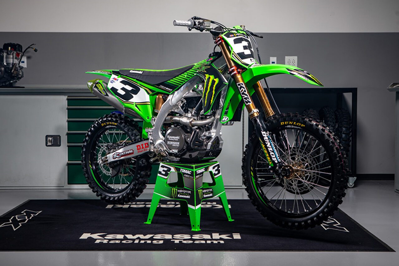 หนึ่งในตัวแข่งที่ได้รับการ “จับตามอง” ทุกฤดูกาลเพราะเป็นตัวที่สอยแชมป์ AMA SUPERCROSS ได้เป็นประจำได้แก่ Kawasaki KX450F ของทีม Monster Energy Kawasaki team มีผู้จัดการทีม Dan Fahie ซึ่งปีนี้ขี่โดย Eli Tomac และ Joey Savatgy ในรายของ Eli Tomac ก็ขึ้นชั้นทำเนียบแชมป์มาแล้วเมื่อปี 2017 …ดังนั้น 2019 นี้ KX450F หมายเลข 3 และ หมายเลข 17 ก็ยังคงผุดผาดน่ารักน่าลุ้นจนเราต้องหยิบมาให้ชม