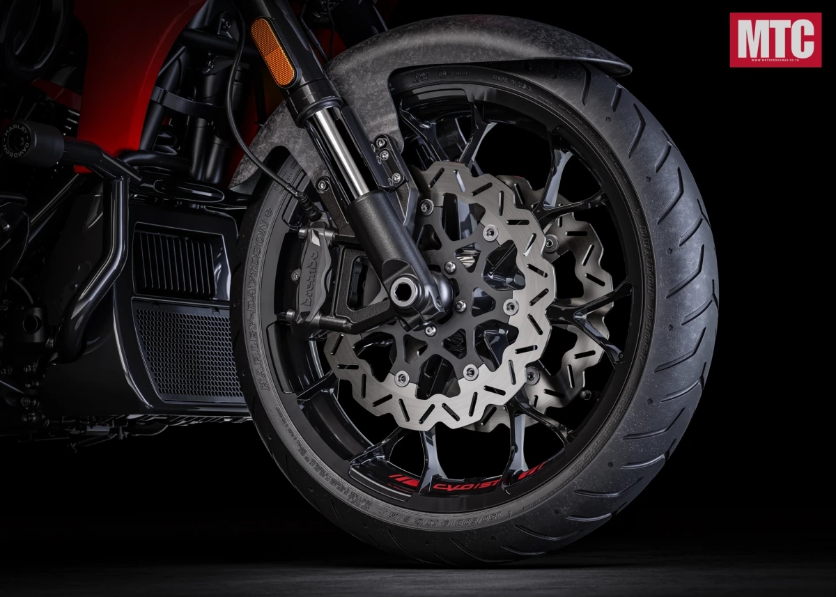 ระบบเบรกเอาอยู่ด้วย Brembo ด้านหน้าจะเป็นดิสก์เบรกคู่กับคาลิเปอร์เบรกเรเดียลเมาท์ 4 ลูกสูบ ด้านหลังจะเป็นดิสก์เบรกเดี่ยวกับคาลิเปอร์เบรกลูกสูบเดี่ยว ส่วนล้อจะเป็นล้ออลูมิเนียมหล่อขึ้นรูปสีดำ 7 ก้าน รัดด้วยยางขนาด Dunlop Harley-Davidson Series ขนาด 130/60 – B19 และ 180/55 – B18 หน้าหลังตามลำดับ