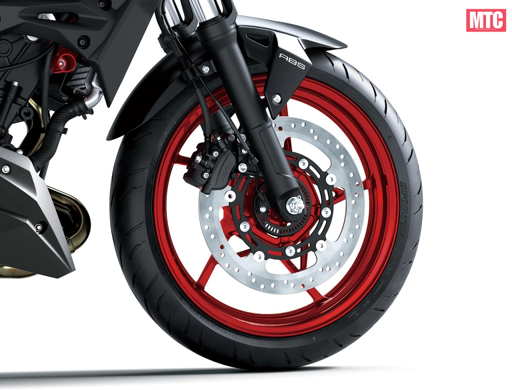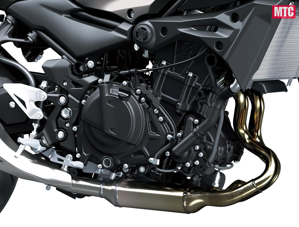 เครื่องยนต์สองสูบเรียง 451 ซีซี ระบายความร้อนด้วยน้ำ แบบ DOHC 4 วาล์วต่อสูบ เช่นเดียวกับแฝดคนละฝาอย่าง Ninja 500 เคลมกำลังสูงสุดมาที่ 45.4 แรงม้าที่ 9,000 รอบต่อนาที แรงบิด 42.6 นิวตันเมตรที่ 6,000 รอบต่อนาที (สเปคอเมริกา 51 แรงม้าที่ 10,000 รอบต่อนาที แรงบิด 42 นิวตันเมตรที่ 7,500 รอบต่อนาที) โดยใข้น้ำมันจากถังขนาด 14 ลิตร พร้อมระบบแอสซิสต์และสลิปเปอร์คลัตช์ กับเกียร์ 6 สปีด