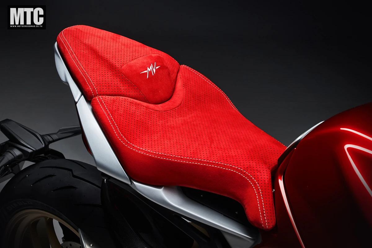 ในส่วนเบาะนั่งหุ้มหนังอัลคันทาร่าปรับทรงโฟมมาใหม่ให้นั่งสบายขึ้นด้วยทั้งคนนั่งคนซ้อน ปรับตำแหน่งพักเท้าให้นั่งได้สบายมากขึ้น นอกจากนี้ยังปรับให้ผิวสัมผัสถังน้ำมันนุ่มขึ้นเพื่อซัพพอร์ตด้านข้างของขาทำให้ควบคุมได้ดีขึ้นด้วย