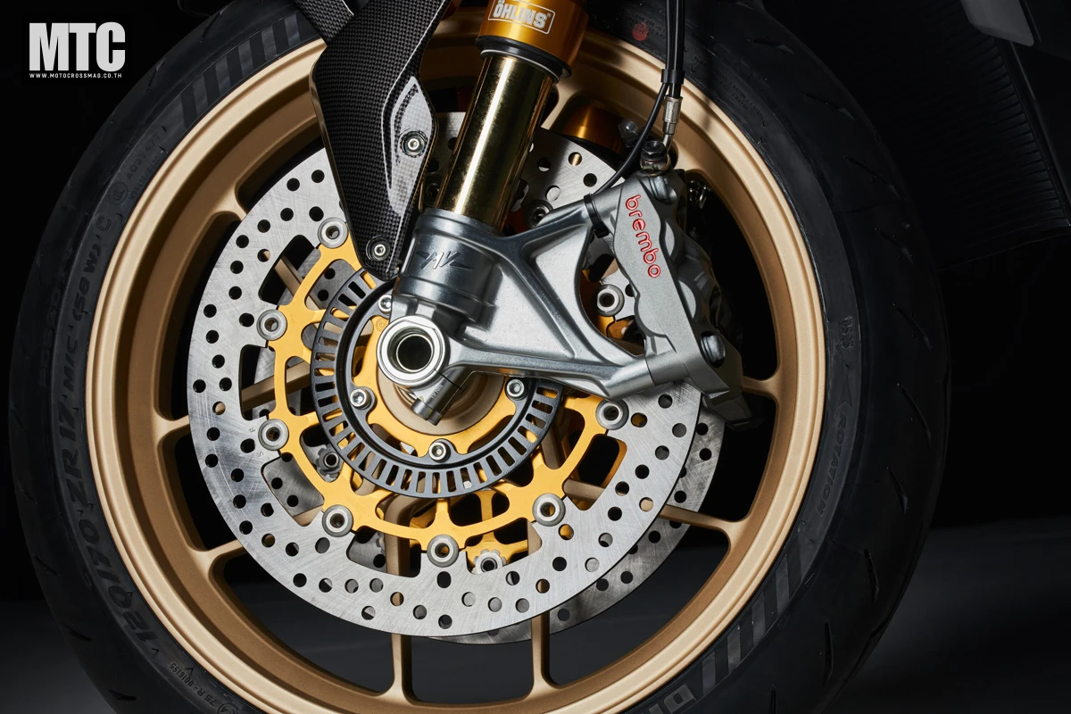 ในส่วนของระบบกันสะเทือนก็โดดเด่นพรีเมียมด้วยโช้คหน้า Ohlins เต็มระบบทั้งด้านหน้าและด้านหลัง