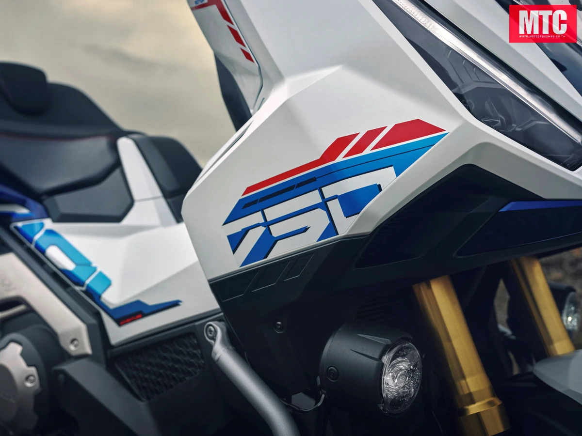 แน่นอนว่าดีไซน์ยังเหมือนเดิมไม่ได้เปลี่ยน นอกจากลายกราฟิกและชุดสีไตรคัลเลอร์อย่างที่บอกไป โดยคันนี้จะเป็นบิ๊กสกู๊ตเตอร์สไตล์แอดเวนเจอร์หรือ SUV Bike ที่โดดเด่นด้วยไฟหน้าคู่พร้อมไฟเลี้ยวบิลต์อินในตำแหน่งเดียวกันกับเดย์ไทม์รันนิ่งไลท์ ที่ให้ภาพลักษณ์ดุดันแบบสายลุย