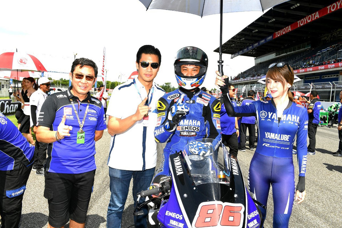 โดย มอส-สุทธิภัทร พัชรธร #86 และโฟลค-สวพล นิลพงษ์ #56 นักบิดเลือดใหม่ สังกัดยามาฮ่า ไทยแลนด์ เรซซิ่งทีม ลงเก็บเกี่ยวประสบการณ์ภายใต้รถแข่งยามาฮ่า YZF-R25 ต่อหน้าแฟนความเร็วชาวไทย ในสังเวียนบ้านเกิด