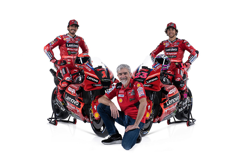 Luigi Dall’Igna (ผู้จัดการทั่วไป Ducati Corse) – “เราตื่นเต้นทุกครั้งที่ได้เริ่มต้นฤดูกาลใหม่ และครั้งนี้มันยิ่งตื่นเต้นเข้าไปใหญ่เพราะผลงานในปีที่ผ่านมาของเรา(2022) จะถูกจารึกลงประวัติศาสตร์ ในขณะที่การรักษาผลลัพธ์เอาไว้ให้คงอยู่น่าจะเป็นอะไรที่ท้าทายพอสมควร.. แต่เป้าหมายของเราคือการไม่หยุดพัฒนา เพื่อก้าวข้ามขีดจำกัดของตัวเอง ..สำหรับ MotoGPเรามี Peccoที่เพิ่งได้แชมป์มา กับ EneaBastianiniที่ได้ตำแหน่งอันดับ 3 กับรถแข่งดูคาติในทีม Gresini.. ผมมั่นใจว่าปีนี้นักแข่งของเราจะต้องขึ้นไปอยู่ในหัวแถวอีกแน่นอน และการแข่งขันจะต้องดุเดือดขึ้น คู่แข่งของเรากำลังทำงานหนักในช่วงปิดฤดูหนาว ซึ่งเราก็จะทำเต็มที่ในการป้องกันตำแหน่งแชมป์ทั้ง 3 ของเรา”..
