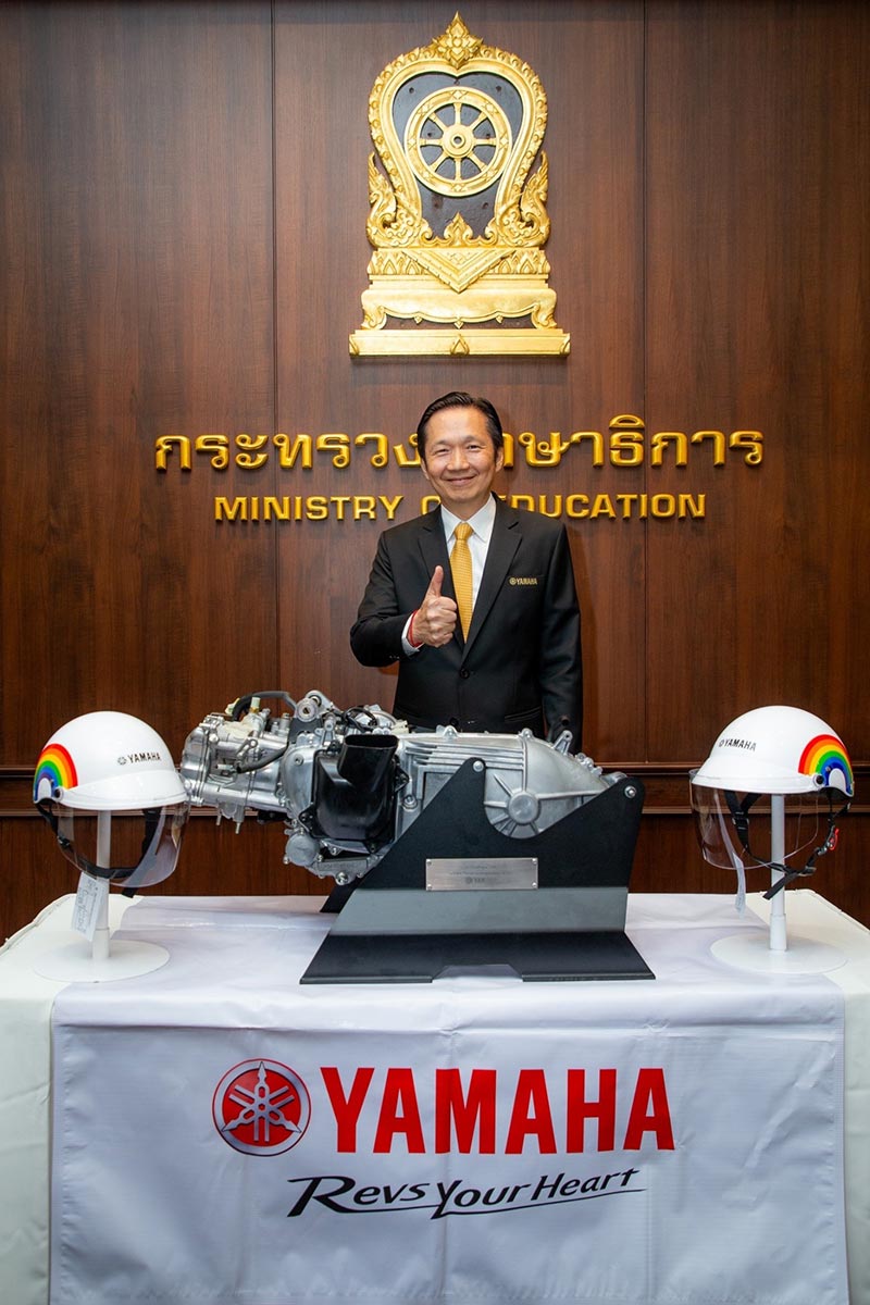 นอกจากนี้ บริษัทฯ ยังได้เล็งเห็นถึงความสำคัญในการพัฒนาความรู้ ทักษะ ความสามารถ ในด้านเทคนิครถจักรยานยนต์ ของนักเรียน นักศึกษา อาชีวศึกษา จึงสนับสนุนเครื่องยนต์เพื่อการศึกษา ขนาด 300 ซีซี. ที่เต็มไปด้วยเทคโนโลยีที่ บริษัทฯ ได้คิดค้นพัฒนามาอย่างต่อเนื่อง เพื่อเผยแพร่ความรู้ด้านระบบเครื่องยนต์ เทคนิคการบำรุงรักษา และเทคโนโลยีรถจักรยานยนต์ยามาฮ่า สู่วิทยาลัยอาชีวศึกษา 25 วิทยาลัย ทั่วประเทศ จำนวน 100 เครื่อง รวมมูลค่า 2,400,000 บาท รวมการส่งมอบหมวกนิรภัย และเครื่องยนต์เพื่อการศึกษา ในครั้งนี้เป็นมูลค่าทั้งสิ้น 5,095,000 บาท