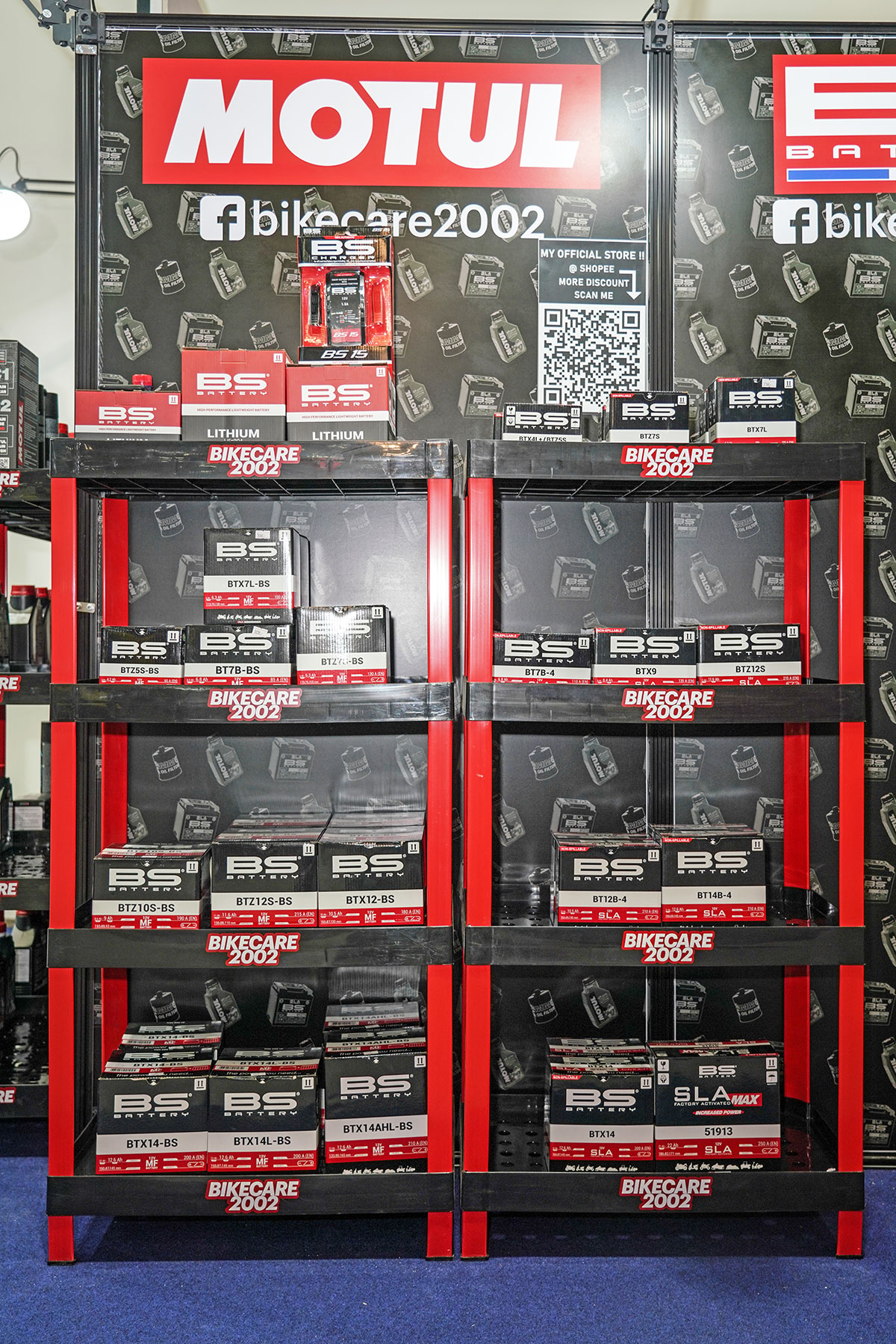 เรียกว่าเป็นเจ้าประจำไม่เคยขาด สำหรับ MOTUL BIKECARE กับการมาร่วมออกบูธใน Motor Expo โดยปีนี้ ยังคงมีผลิตภัณฑ์น้ำมันเครื่อง MOTUL หลากหลายรุ่นมาให้เหล่าไบเกอร์ได้เลือกซื้อ เสริมด้วยผลิตภัณฑ์สายซ่อมบำรุงดูแลรักษารถที่มีตั้งแต่ สเปรย์ล้างล้อ น้ำมันโช้คหน้าครบเบอร์ น้ำยาล้างกรองอากาศ ล้างเครื่องยนต์ น้ำยาหม้อน้ำ เคลือบโซ่ เคลือบเงารถ ฯลฯ นอกจากนี้ยังมีแบตเตอรี่ BS มาให้เลือกใช้อีกด้วย เรียกว่าเข้าบูธเดียวได้ของครบกันไปเลย!!