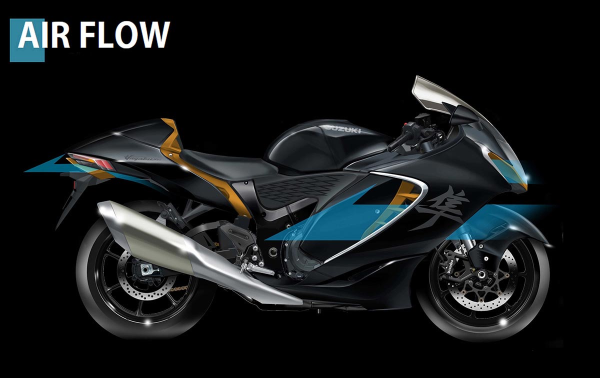 แม้ว่ามองจากภายนอก“หน้าตา” ของ Hayabusaจะดูไม่เปลี่ยนไปมากเท่าไร แต่ทางผู้พัฒนาก็ออกมาบอกว่า “เชื่อเถอะ นี่คือ Hayabusa ที่จะเติมเต็มคุณได้ดีที่สุดแล้ว” ด้วยการใช้พื้นฐานเฟรมเดิมทำให้มิติรถดูไม่เปลี่ยนไปมากเท่าไรกับการเปลี่ยนชิ้นซับเฟรมด้านหลังเล็กน้อย.. แต่ทุกๆสิ่งถูกออกแบบมาเพื่อตอบโจทย์ระหว่างคำว่า “ความสบาย” กับ “ความสปอร์ต” ของผู้ขับขี่ให้มากที่สุด ..แน่นอนว่าระบบแอโร่ไดนามิกของพญาเหยี่ยวคันนี้ยังยอดเยี่ยมเหมือนเช่นเคย