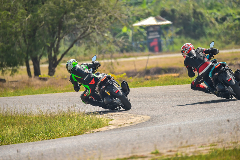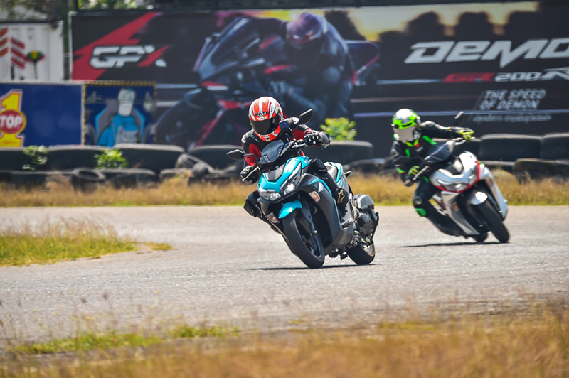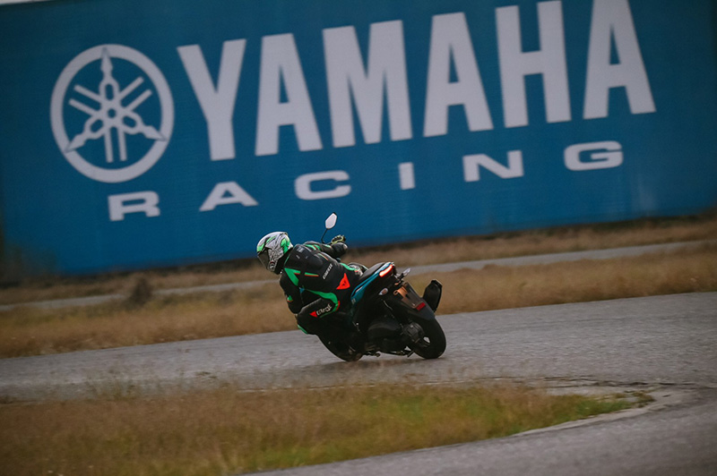 ผ่านชั่วโมงแรกไป ยางติดรถยังดูดี ไม่เป็นคลื่น ขึ้นขุยเล็กน้อย น้ำมันเชื้อเพลิงถูกเติมตามปกติ ระบบ Y-Connect เปิดโหมด Dashboard ตลอดเวลา เห็นได้ว่ารอบเครื่องขึ้นเรดไลน์ตลอดเวลา ความเร็วท็อปสปีดที่ใช้ในสนามไทยแลนด์เซอร์กิต อยู่ที่ 110 กิโลเมตรต่อชั่วโมง ซึ่งมีความรู้สึกว่ามันยังไม่หมดง่ายๆ ระบบเบรกหลังแบบดรัมเบรกเอาอยู่ จำเป็นต้องใช้เพราะนี่คือรถออโตเมติก ที่จะต้องใช้ระบบเบรกหลังแทนเอนจิ้นเบรก ส่วนระบบเบรกหน้าเป็นดิสก์เบรก มั่นใจได้เต็มที่ ในช่วงครึ่งทางของการทดสอบ เบรกหลังเริ่มเฟส เป็นเรื่องธรรมดา แต่เราก็สามารถปรับตั้งให้ลึกเข้าไปด้วยมือ ทำให้สามารถขับขี่ต่อได้อย่างปลอดภัย ระบบกันสะเทือนหน้าและหลัง ถูกพัฒนามาเป็นอย่างดี รองรับกับการต่อสู้แรงเหวี่ยงหนีศูนย์ เวลากดคันเร่งในโค้งได้อย่างมันส์ ไปจนถึงระยะเทล ที่ปรับใหม่ทำให้รู้สึกว่ายิ่งขี่ก็ยิ่งสนุก จนเวลาต่อรอบที่ทีมทดสอบทำได้ดีที่สุดในวันนั้นคือ 2.01 วินาที ถือว่าไม่ธรรมดาสำหรับรถเดิมๆ จากโรงงาน กับการขับขี่คนละ 25 นาที