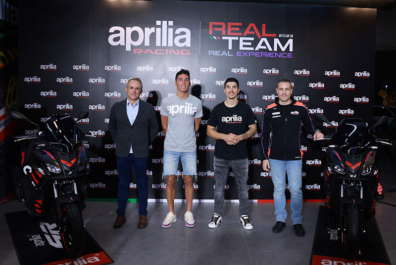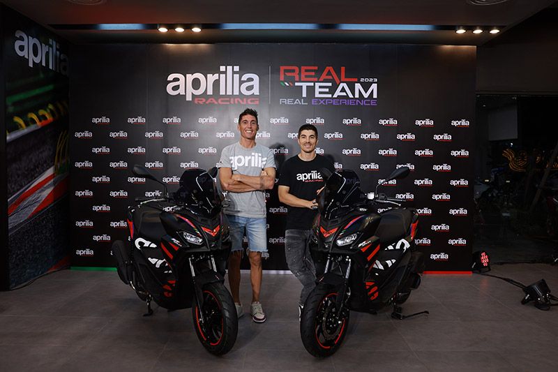 “อาพริเลีย” แบรนด์ซูเปอร์ไบค์ระดับตำนานสัญชาติอิตาเลียนเอาใจไบค์เกอร์ไทยสายสปอร์ตที่มีใจรักในความเร็วแรง ย้ำดีเอ็นเอความเป็น “BE A RACER” ดึง 2 นักแข่งขันทีมแข่ง Aprilia Racing รายการ MotoGP อย่าง “อเล็กซ์ เอสปาร์กาโร่ (Aleix Espargaro)” และ “มาเวริค วีญาเลส (Maverick Viñales)” สองนักแข่งรถระดับซูเปอร์สตาร์ ผู้พา Aprilia ประกาศศักดามาแล้วทั่วโลก พร้อมเปิดตัว“อาพริเลีย เอสอาร์ จีที 200 เรพพิก้า (APRILIA SR GT 200 REPLICA)” สกู๊ตเตอร์ซูเปอร์สปอร์ตรุ่นแรกที่ถอดสุนทรียะการออกแบบ มาจาก Aprilia RS-GP โดยตรง นี่คือรถที่ใช้ในการแข่งขัน MotoGP WorldChampionship 2023 มาร่วมสร้างตำนานบทใหม่ ถ่ายทอด จิตวิญญาณของรถแข่งระดับโลก