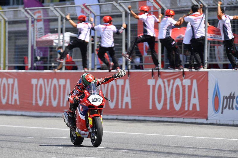การขับเคี่ยวเพื่อลุ้นแชมป์ในเรซนี้ต้องไปตัดสินกันถึงโค้งสุดท้าย ก่อนที่ อภิวัฒน์ วงศ์ธนานนท์ จาก ยามาฮ่า ไทยแลนด์ เรซซิ่ง ทีม ที่แม้ร่วงลงไปอยู่ในอันดับ 4 แต่พลิกแซงขึ้นมาคว้าชัยชนะไปครองได้อย่างสุดมันส์ด้วยเวลา 21 นาที 2.530 วินาที ขณะที่ อนุภาพ คว้าอันดับ 3 ไปครอง ด้าน “แชมป์” ภาสวิชญ์ ฐิติวรารักษ์ จาก แอสเตโม เอสไอ เรซซิ่ง วิธ ไทย ฮอนด้า จบเรซอันดับ 5 ตามด้วย ฐิติพงศ์ ในอันดับ 8 ตามหลังแชมป์ 7.537 วินาที