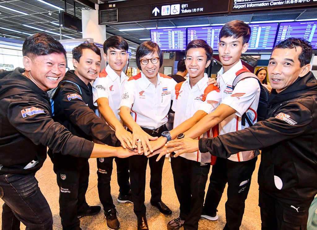 ทีมนักบิดเยาวชนไทยจากโครงการ “เรซ ทู เดอะ ดรีม” นำโดย “ก๊องซ์ ธัชกร บัวศรี” , “บิว วริทธ์ ทองนพคุณ” และ “ฟิลม์ ปิยวัฒน์ ประทุมยศ” พร้อมบินลัดฟ้าสู้ศึกในรายการ เอเชีย ทาเลนท์ คัพ ณ สนามเซปังเซอร์กิต ประเทศ มาเลเซีย โดยมี ดร.อารักษ์ พรประภา รองประธานกรรมการบริหาร บริษัท เอ.พี. ฮอนด้า จำกัด ร่วมส่งทีมเยาวชนไทยอย่างใกล้ชิด