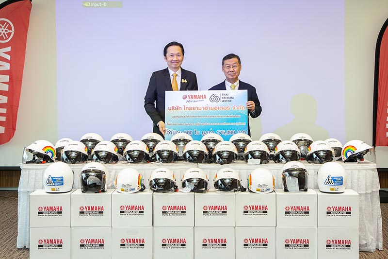 นายพงศธร เอื้อมงคลชัย ประธานกรรมการบริหาร บริษัท ไทยยามาฮ่ามอเตอร์ จำกัด พร้อมคณะผู้บริหารระดับสูง ร่วมกันมอบหมวกนิรภัยมาตรฐานสำหรับผู้ใหญ่ จำนวน 500 ใบ รวมมูลค่า 350,000 บาท