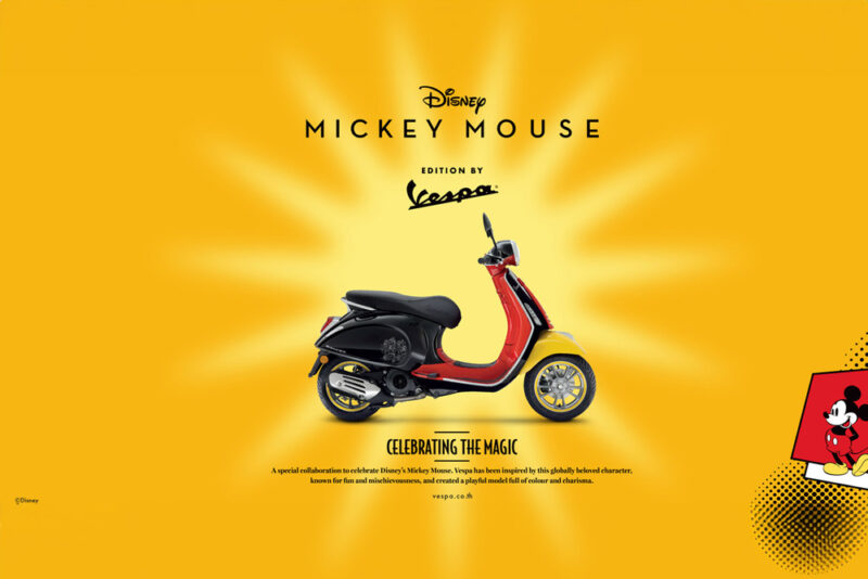 คอลแลปจากสองสุดยอดแบรนด์ที่เป็นขวัญใจคนทั้งโลก เมื่อตัวการ์ตูนขวัญใจคนทั้งโลกของ Disney มาอยู่ในสกู๊ตเตอร์สุดไอคอนิคอย่าง Vespa ความสนุก