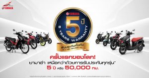 ยามาฮ่าเพิ่มความมั่นใจ เจ้าแรกของโลกที่รับประกันทั้งคัน 5 ปี หรือ 50,000 กม.