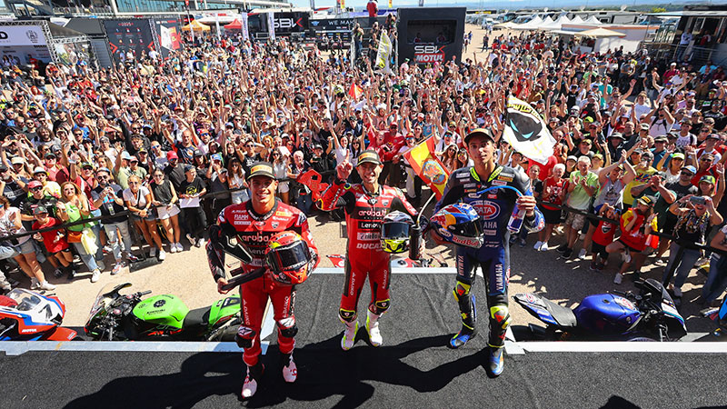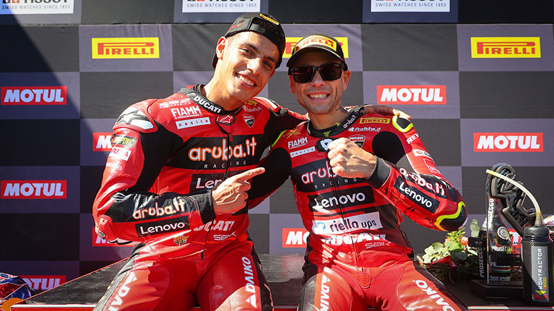 #1 Alvaro Bautista (Aruba.it Racing – Ducati) สร้างสถิติไต่เต้าสู่อันดับที่ 3 ตลอดกาลของผู้ที่ “ได้ชัยชนะมากที่สุดในรายการ ” ด้วย 2 แชมป์ของวันอาทิตย์เพียงวันเดียว หลังเจ้าตัวเสียจังหวะล้มพับไปในเรซแรกแต่ก็ยังไม่เสียกำลังใจจนคว้าชัยวันถัดมาได้.. ส่วน P2 นั้น “เหมาๆ” สำหรับ #54 Toprak Razgatlioglu (Pata Yamaha Prometeon WorldSBK) หน้าเดิมที่ยังไขกุญแจความเร็วเอาชนะดูคาติไม่ได้เสียที..