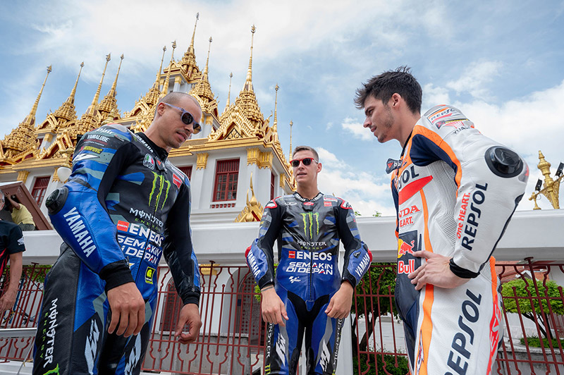 25 ตุลาคม 2566 ที่กรุงเทพฯ : ดอร์น่า สปอร์ต เจ้าของลิขสิทธิ์โมโตจีพี ยกทัพทีมงาน ถ่ายทำวีดีโอประชาสัมพันธ์ประเทศไทยที่จะใช้เผยแพร่ในช่วงสุดสัปดาห์การแข่งขันบริเวณแลนด์มาร์คของกรุงเทพ ปักหมุด “เกาะรัตนโกสินทร์” เริ่มจากถนนราชดำเนิน ถนนมหาไชย วัดราชนัดดารามวรวิหาร ภายในมีจิตรกรรมฝาผนังกลุ่มดาวฤกษ์ที่ถือเป็นของหายากและโลหะปราสาทหลังเดียวของโลกที่ยังอยู่ในสภาพสมบูรณ์ สถาปัตยกรรมที่งดงาม ตระการตา ภาพจำที่นักท่องเที่ยวต่างชาติ ต้องอยากมาเยือนสักครั้งในชีวิต
