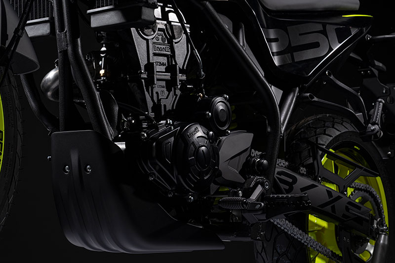 Benelli เคลมว่า เครื่องยนต์ของ BKX 250 นั้น“บิดสนุกมากขึ้น” แม้ชิ้นส่วนภายในเครื่องยนต์ต่างๆ จะเป็นแบบเดียวกับทุกโมเดลคลาส 250 ซีซี. ก่อนหน้านี้ แรงม้า 25.8 ตัว ที่ 9,250 รอบ แรงบิดสูงสุด 21 นิวตันเมตร ที่ 8,000 รอบ (เครื่องยนต์ 249 ซีซี.สูบเดี่ยว ระบายความร้อนด้วยน้ำ หม้อน้ำแนวตั้งแยก 2 ฝั่ง ระบบหัวฉีด 4วาล์ว)
