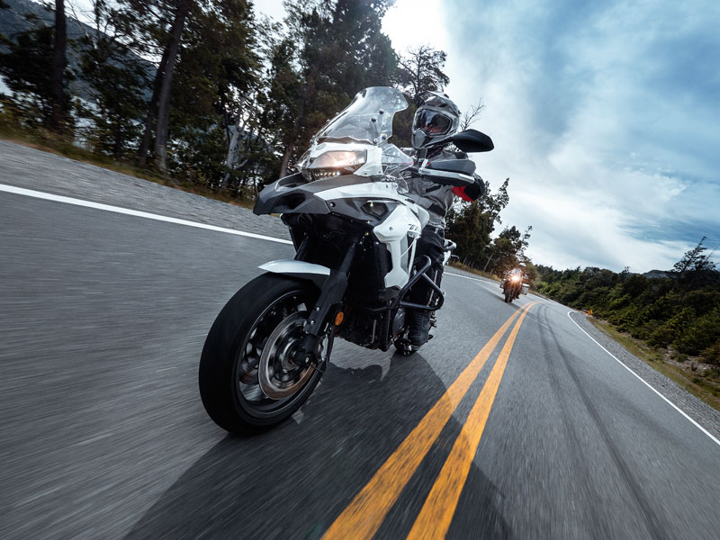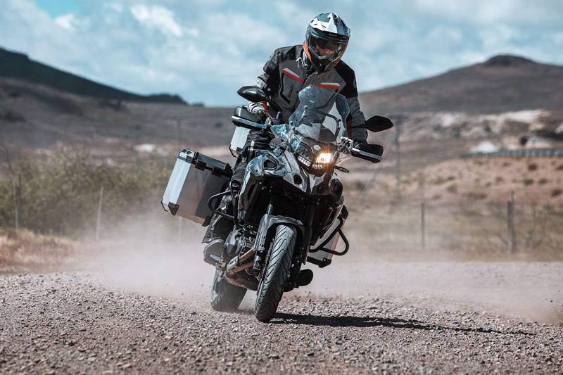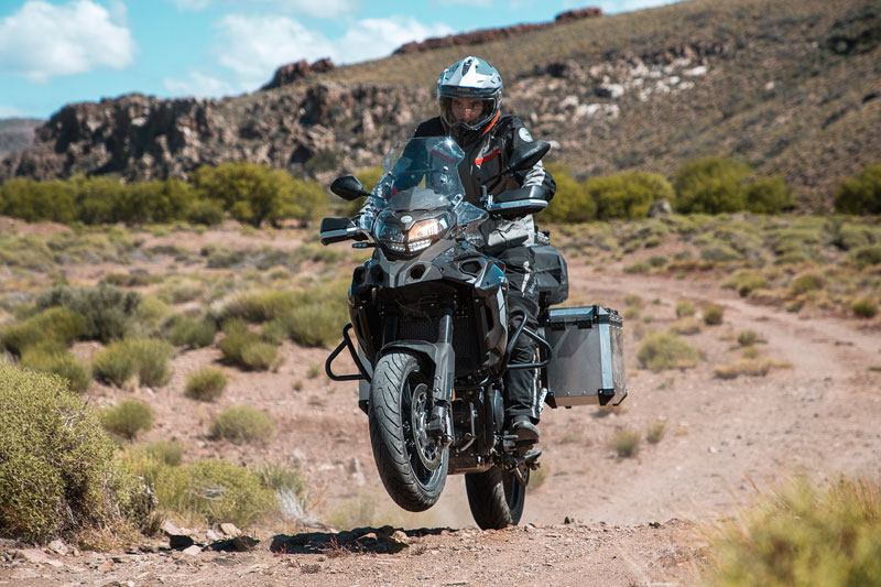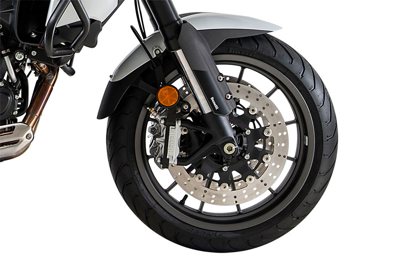 New TRK502 – 2021 ให้คุณมั่นใจทุกการขับขี่ด้วยระบบเบรก ABS หน้า-หลัง ดิสก์หน้าคู่ขนาด 320 มิลลิเมตร พร้อมคาลิปเปอร์แบบ 4 ลูกสูบ ดิสก์หลังขนาด 260 มิลลิเมตร พร้อมคาลิปเปอร์แบบ 2 ลูกสูบ โช้คอัพหน้าแบบ USD ขนาดเส้นผ่านศูนย์กลาง 50 มิลลิเมตร ให้ประสิทธิภาพการเบรกที่ทรงพลังและสมดุลยิ่งขึ้น วงล้ออลูมิเนียมอัลลอยด์ด้านหน้าขนาด 17 นิ้ว ด้านหลังขนาด 17 นิ้ว ขนาดยางหน้า 120/70-R17 ขนาดยางหลัง 160/60-R17 ของ Pirelli Angel GT ความจุถังน้ำมันเชื้อเพลิง 20 ลิตร
