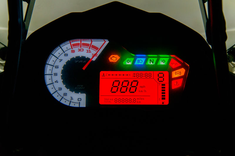 New TRK 502 – 2021 ดุดันด้วยลายกราฟิกใหม่ สื่อถึงจิตวิญญาณนักเดินทาง หน้าปัดเรือนไมล์ปรับลายกราฟฟิกและเปลี่ยนสีใหม่ สวิตช์แฮนด์ มาพร้อมไฟ LEDเรืองแสง ในขณะที่กระจกมองข้างมีการออกแบบใหม่พร้อมกับโลโก้ TRK รวมถึงมือจับ การ์ดแฮนด์รุ่นใหม่ที่เพิ่มเติมความหรูหราแต่ยังคงความทนทาน ขณะที่แฮนด์บาร์เปลี่ยนเป็นสีดำด้านพร้อมแถบระยะ สำหรับปรับตั้งองศาการจับเพื่อให้ผู้ขับขี่แต่ละคนได้อยู่ในตำแหน่งการขับขี่ที่ดีที่สุด เพิ่มเติมการ์ดป้องกันแบบใหม่สำหรับฝาครอบคลัตช์เครื่องยนต์ นอกจากนี้ยังมีแรคท้ายที่ทำจากโลหะผสมอลูมิเนียม ซึ่งได้รับการออกแบบใหม่สวยสะดุดตา