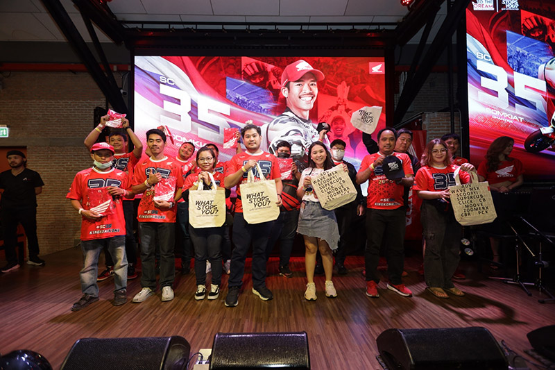 แบบติดขอบสนามโมโตจีพี ไทยแลนด์กรังด์ปรีซ์ รถจักรยานยนต์ฮอนด้า จัดแคมเปญ “#เชียร์ให้ก้อง เชียร์ไทยให้เป็นหนึ่ง” ชวนแฟนมอเตอร์สปอร์ตทั่วประเทศร่วมส่งแรงใจเชียร์ “ก้อง” สมเกียรติ จันทรา นักบิดไทยให้ดังกระหึ่มไปทั่วโลก ลุ้นรางวัลใหญ่ ตั๋วเข้าชมโมโตจีพีที่บุรีรัมย์ 2 ที่นั่ง พร้อมที่พักถึง 20 รางวัล และคอลเลคชัน #SC35 Special Edition อีก 200 รางวัล รวมทั้งสิ้น 220 รางวัล