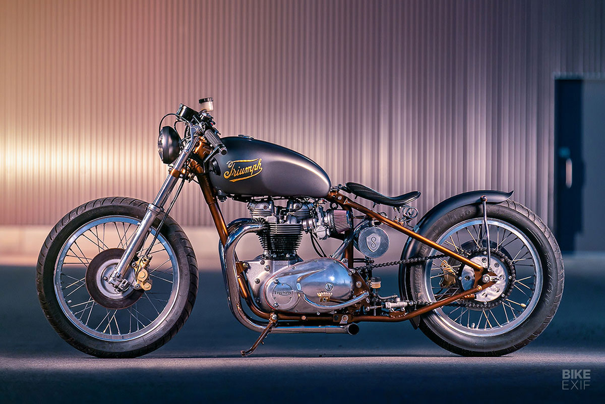 ใจความสำคัญของการลงมือ คือเริ่มต้นด้วย “งานเฟรม” ที่คว้าต้นฉบับ Triumph Bonneville ปี 1968 มาเหลาให้เรี่ยมด้วยทิศทางแบบ “ฮาร์ดเทลล์” ซึ่งยืดฐานล้อออกไปจากมาตรฐาน 4 นิ้ว แล้ววางเครื่องยนต์ 2 สูบเรียงอันยืนยงจาก T120 ปี1972 ซึ่งไซส์เดิมขนาด 650 ซีซี. แต่โมฯด้วยชุดคิตให้เป็น 7 ครึ่ง นั่นหมายถึงการอัพเกรดด้วยกระบอกสูบและลูกสูบใหม่ รวมถึงชุดวาล์วและแคมชาฟท์ ส่วนระบบจ่ายเชื้อเพลิงมีการเปลี่ยนเป็นคาบูเรเตอร์ PWK ปรับระบบจุดระเบิดด้วยหัวเทียน Amal 930 MK1