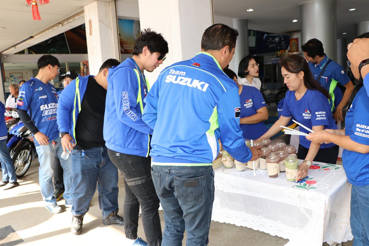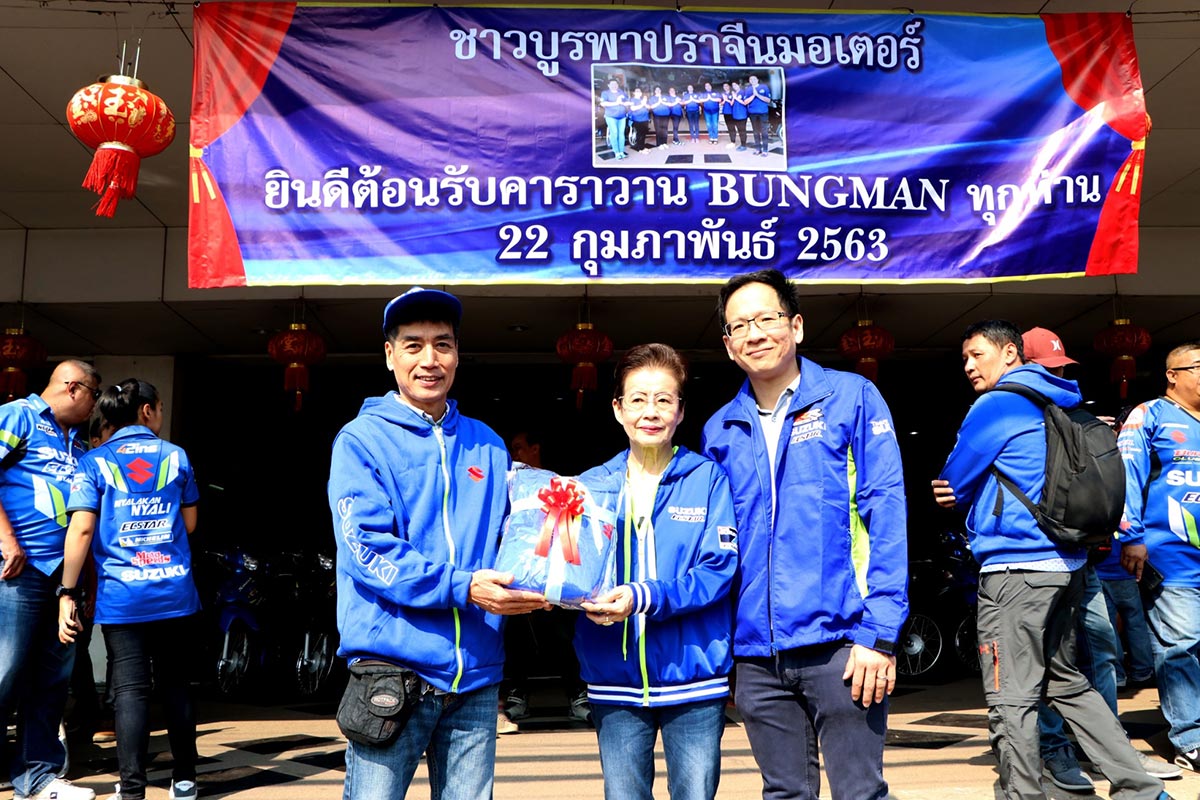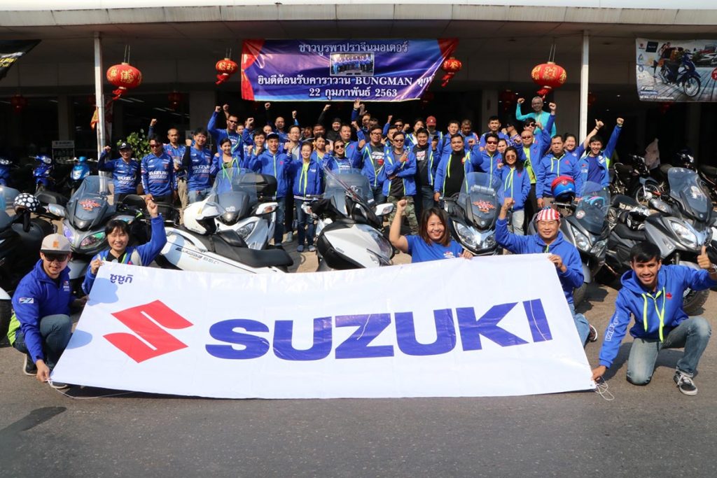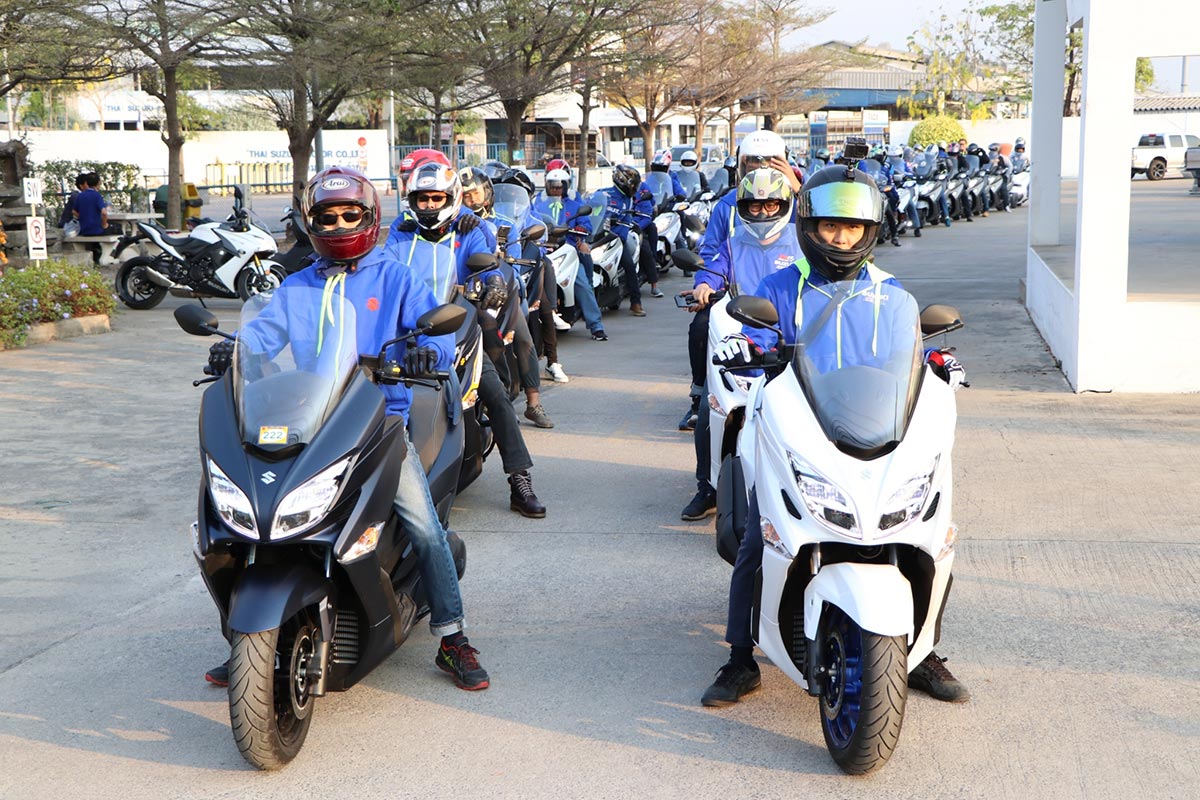 ส่งสัญญาณความพร้อมตั้งต้นปีอีกครั้งกับ ซูซูกิ Burgman ที่ได้รวมตัวกันไปเมื่อขึ้นในวันเสาร์ที่ 22 กุมภาพันธ์ ณ บริเวณด้านหน้า บริษัท ไทยซูซูกิมอเตอร์ จำกัด ที่มีทั้ง ซูซูกิ Burgman 400 รถสกู๊ตเตอร์ยอดนิยมที่สุดเวลานี้ หรือจะเป็น ซูซูกิ Burgman 200 และรุ่นใหญ่สุดกับ ซูซูกิ Burgman 650 ที่จะได้ร่วมทริปเดินทางไปด้วยกันในครั้งนี้ มีสมาชิกทั้งหมดกว่า 50 คัน นอกจากสมาชิกแล้ว ทริปนี้ยังได้รับเกียรติจากผู้บริหารจากซูซูกิ ร่วมขบวน โดย มร.อากิฮิโกะ นากามุระ ผู้จัดการทั่วไปงานบริการหลังการขาย และ มร.ชินอิจิโระ โทโมมัตสึ ผู้จัดการส่วนวางแผนผลิตภัณฑ์ ที่จะได้ร่วมเดินทางด้วย ซูซูกิ Burgman 400 ตลอดทริป ครอบครัว