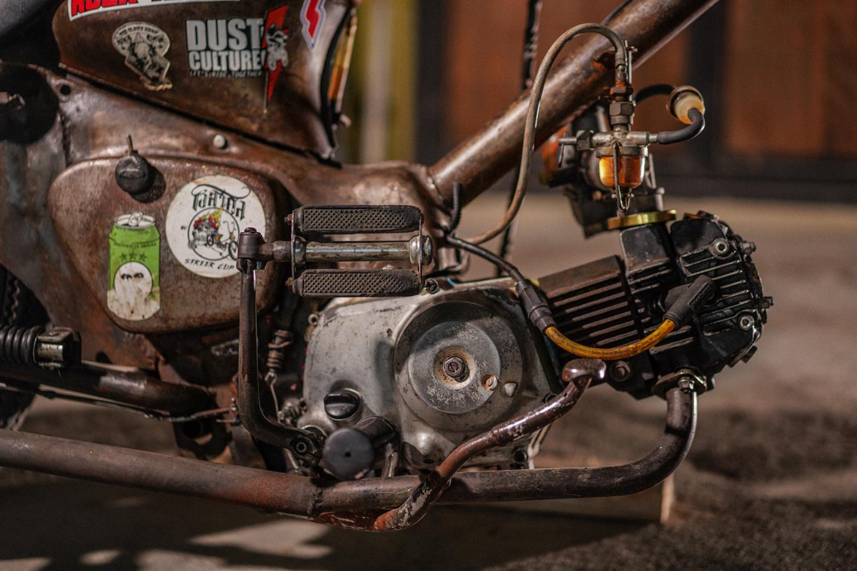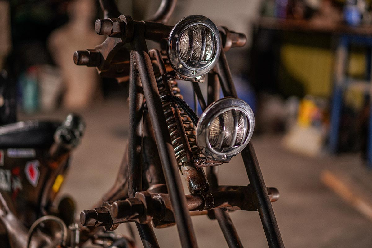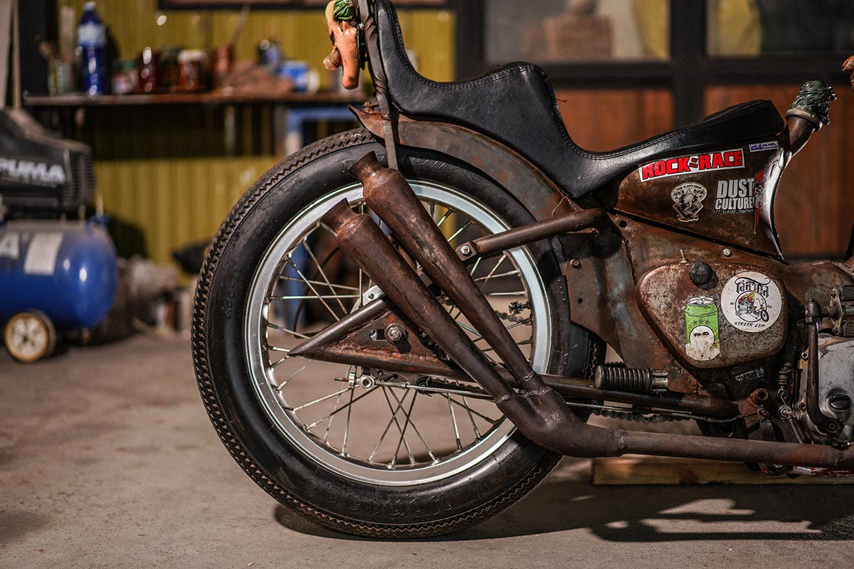 …นี่คือ Custom จากกลุ่ม “โอ้สาคูล” ที่ถูกสร้างด้วยแรงบันดาลใจของเด็กคนหนึ่งที่หลงใหลในรถมอเตอร์ไซค์แนว Chopper Old School แบบอเมริกัน แต่ด้วยงบประมาณการสร้างที่มีไม่มากนักของเจ้าของรถ จึงมีแนวคิดที่จะนำรถ C50 ถังแยก ของค่าย Honda ซึ่งมีเชื้อสายยุ่นโดยแท้ที่ถูกนำมาขายในบ้านเราในช่วง ปี ค.ศ. 1966 หรือ พ.ศ. 2509 รถคันนี้จึงมีอายุถึง 53 ปีเลยทีเดียว!! ซึ่งเป็นรถที่ราคาไม่ได้สูงจนจับต้องไม่ได้แถมยัง “เข้าร้านไหนก็ซ่อมได้” เพื่อตอบโจทย์ทุกปัญหาในการเดินทาง