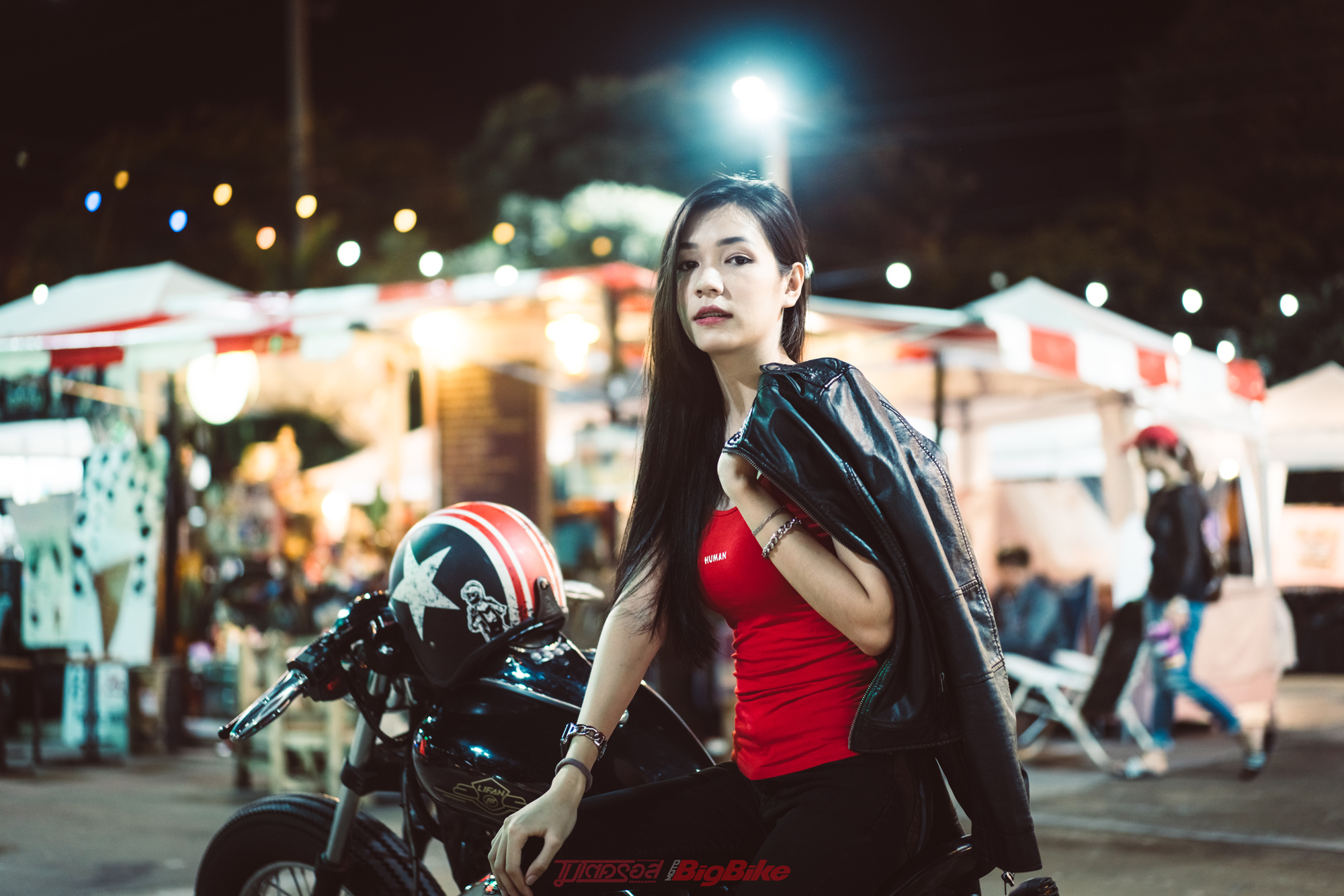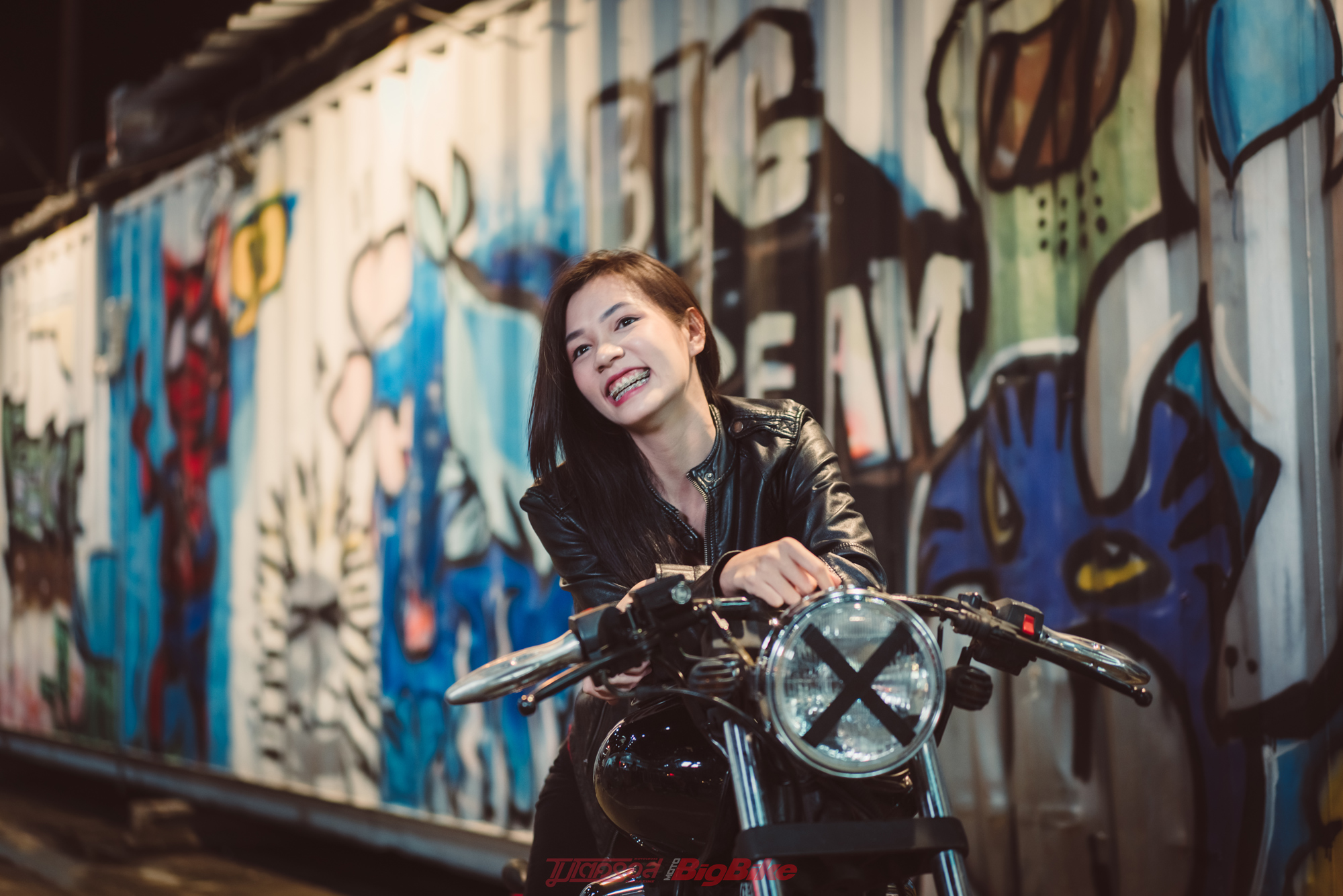 ก็ถ้าอยากลองอะไรที่มันคลาสสิค ก็อยากให้ลองดูสไตล์นี้บ้าง เพราะผู้หญิงขี่น้อย อาจจะดูแตกต่างกว่าคนอื่นเขา ถ้าอยากมีความแตกต่างก็ลองดูนะคะ อีกอย่างถ้าขี่รถแนวนี้ เรื่องระบบเซฟตี้ก็ต้องใส่ใจ ด้วยความที่มันเป็นรถเล็ก ถ้าขี่ระยะไกล บางที่อาจจะมีปัญหาเรื่องระบบสั่น กันสะบัดมันไม่มี เพราะฉะนั้นถ้าขี่ก็ขี่แบบไม่ต้องเร็ว ไปเรื่อยๆขี่แบบช้าๆ เอาเท่ๆก็พอ แล้วก็ใส่หมวกกันน็อคให้ปลอดภัย และก็ที่สำคัญ ควรมีเสื้อหนังนะคะ เพราะเวลาฝนตกน้ำดีดก็ป้องกันได้อยู่…..