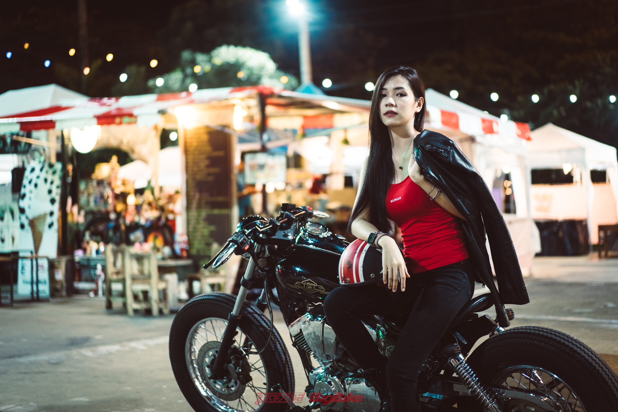 เราพบเธอในค่ำคืนกลางฤดูฝน “เค้ก-อรวรรยา จารุสิริการณ์กูล” สาวสวยที่เล่นรถต่างออกไปอีกแนวจากสาวๆที่เคยมาคอลัมน์ Beauty & The Bikes ของเรา เธอชื่นชอบมอ’ไซค์ในแนวคัสตอม และมีความฝันถึงการครอบครองอเมริกันช็อปเปอร์…เอาล่ะ ไปรู้จักเธอกันเลย…
