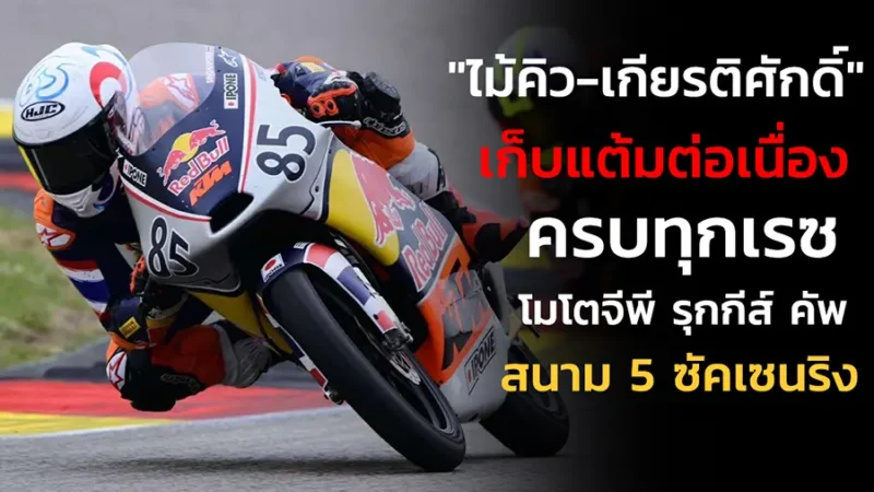 “ไม้คิว-เกียรติศักดิ์” เก็บแต้มต่อเนื่องครบทุกเรซ ศึก “โมโตจีพี รุกกีส์ คัพ” สนาม 5 ซัคเซนริง