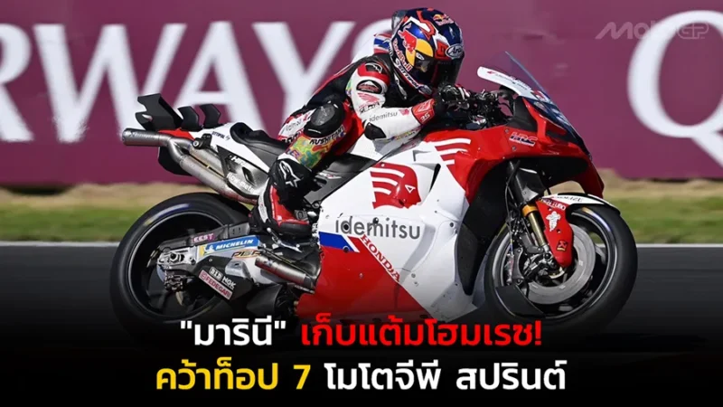 “มารินี” เก็บแต้มโฮมเรซ! คว้าท็อป 7 โมโตจีพี สปรินต์ “ก้อง-สมเกียรติ” บิดขยับอันดับ เข้าป้ายที่ 19 มิซาโน