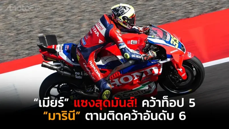 “เมียร์” แซงสุดมันส์! คว้าท็อป 5 “มารินี” ตามติดคว้าอันดับ 6 สปรินต์ โมโตจีพี มันดาลิกา